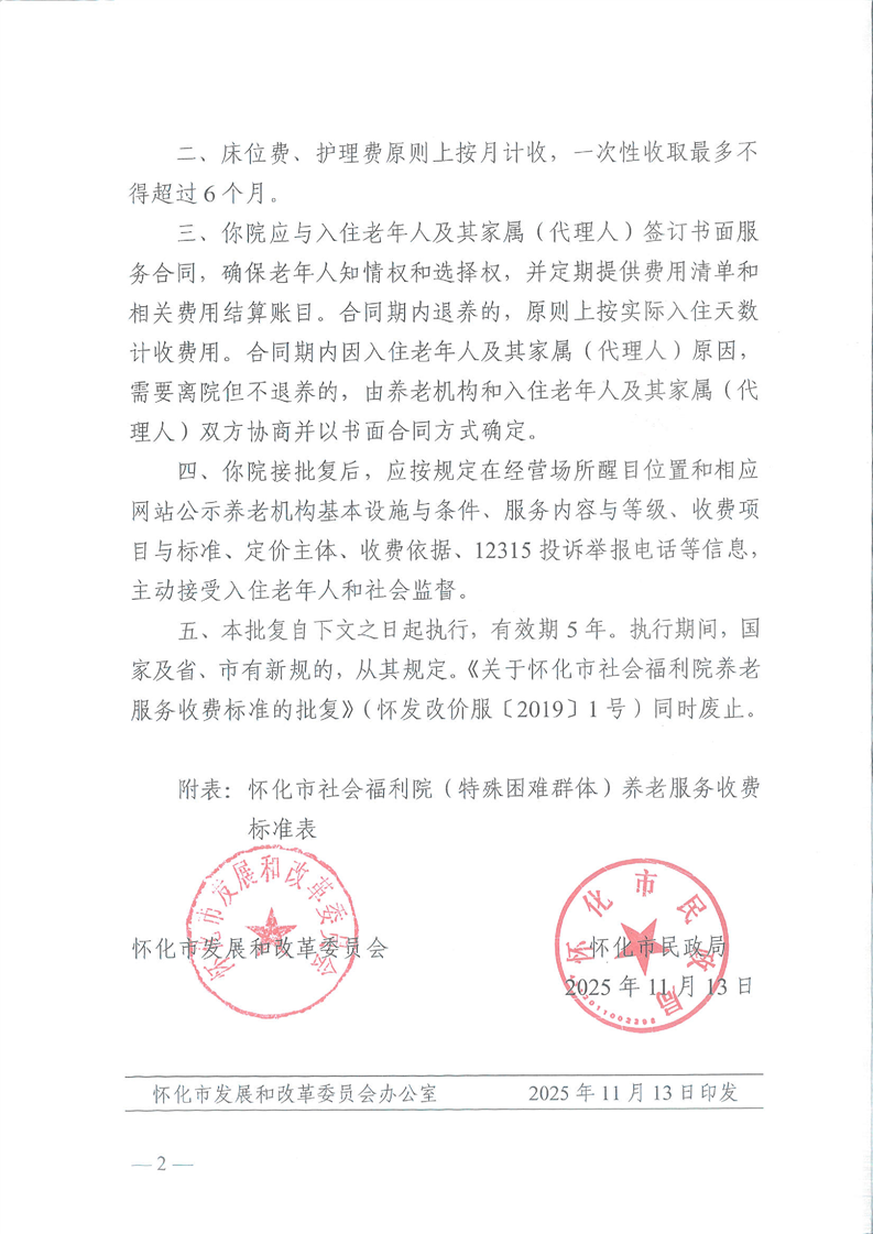 关于怀化市社会福利院(特殊困难群体)养老服务收费标准的批复