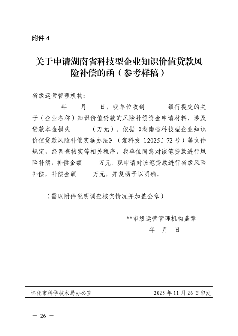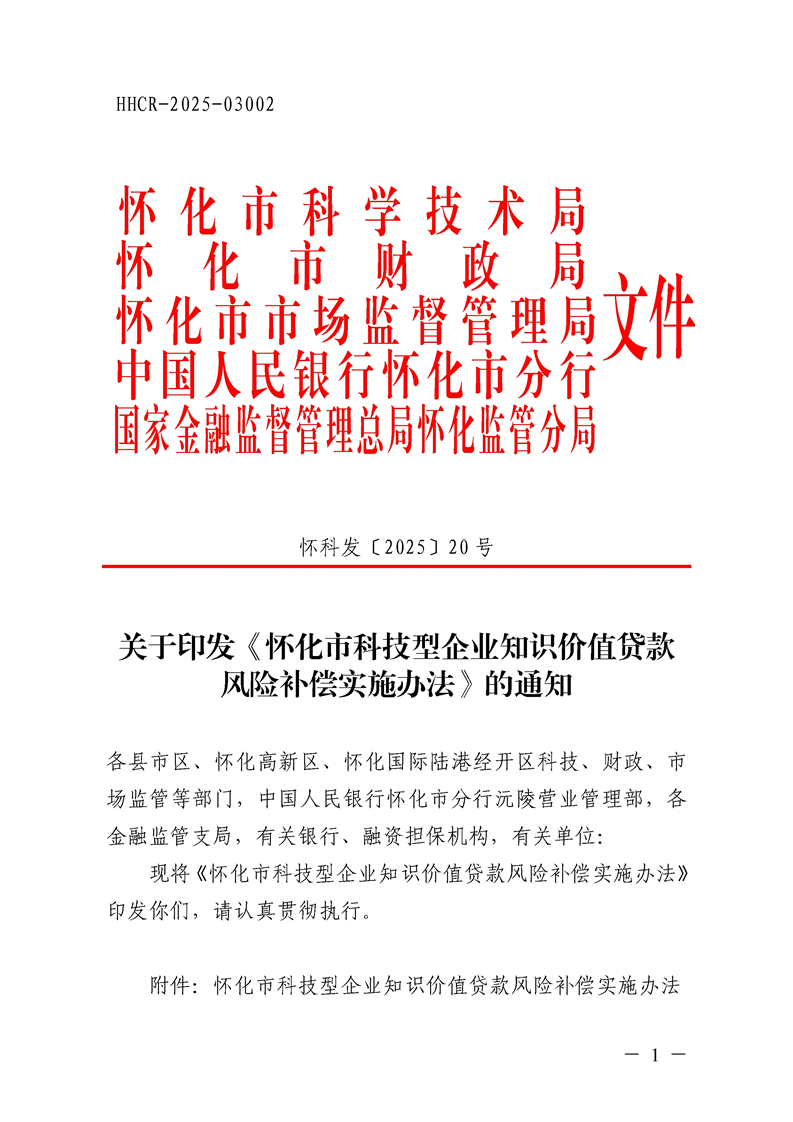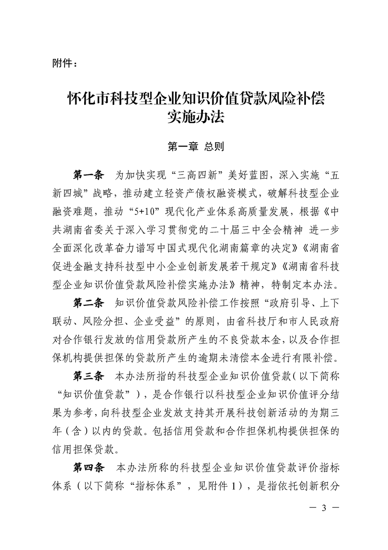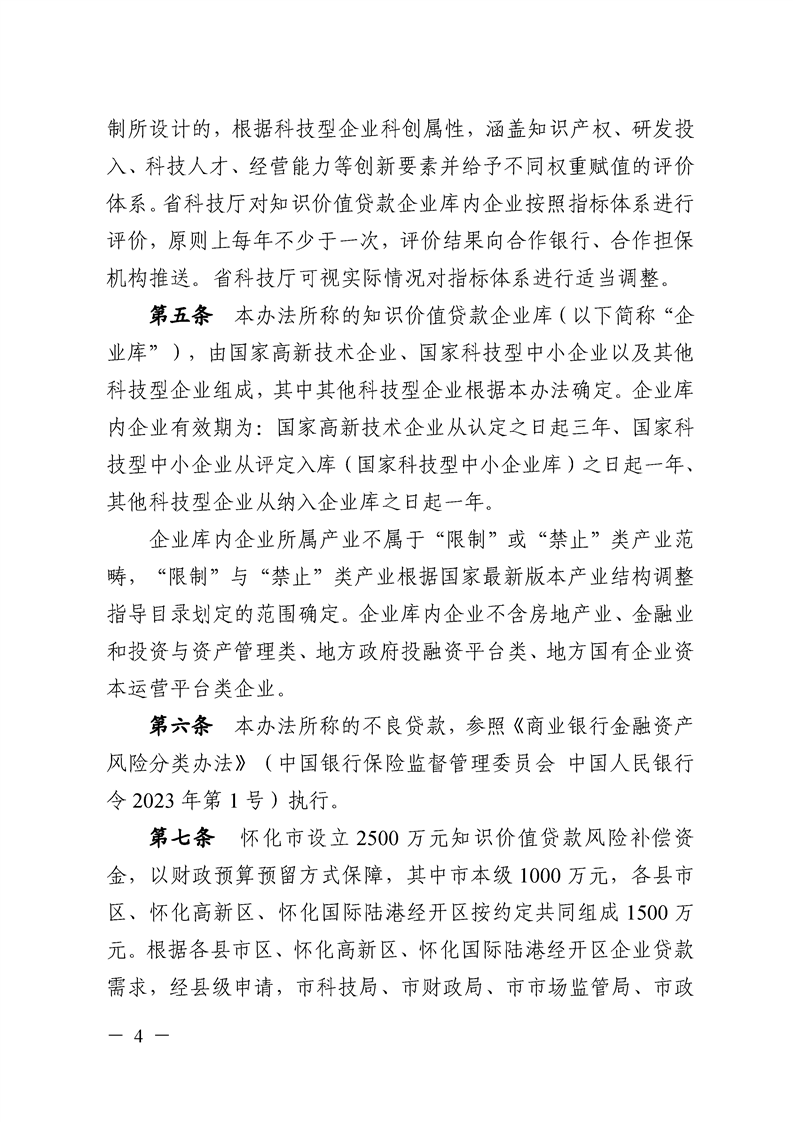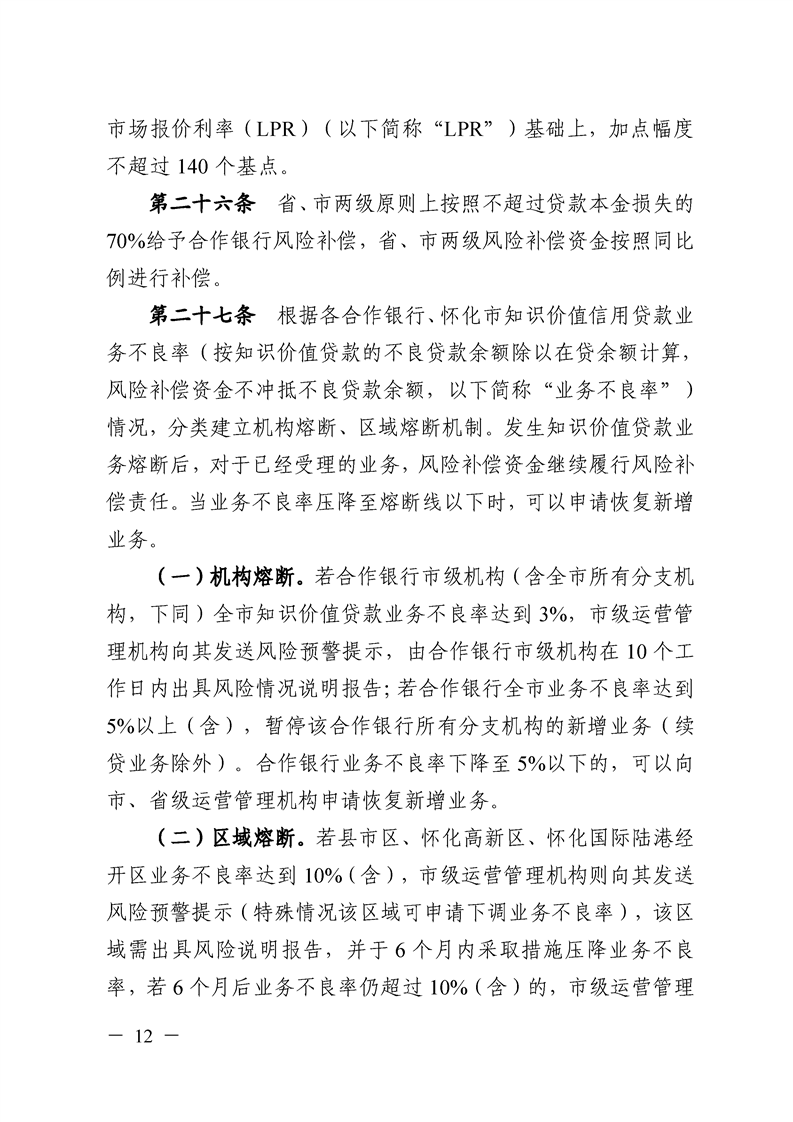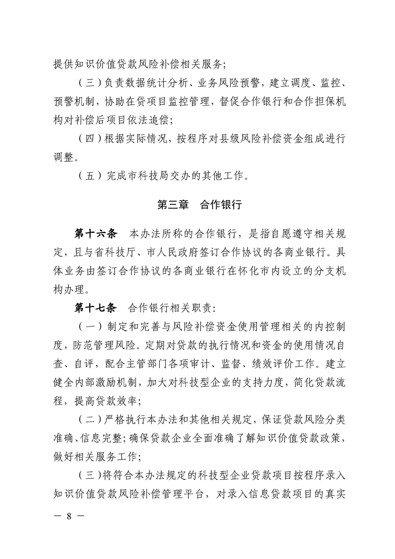 关于印发《怀化市科技型企业知识价值贷款风险补偿实施办法》的通知
