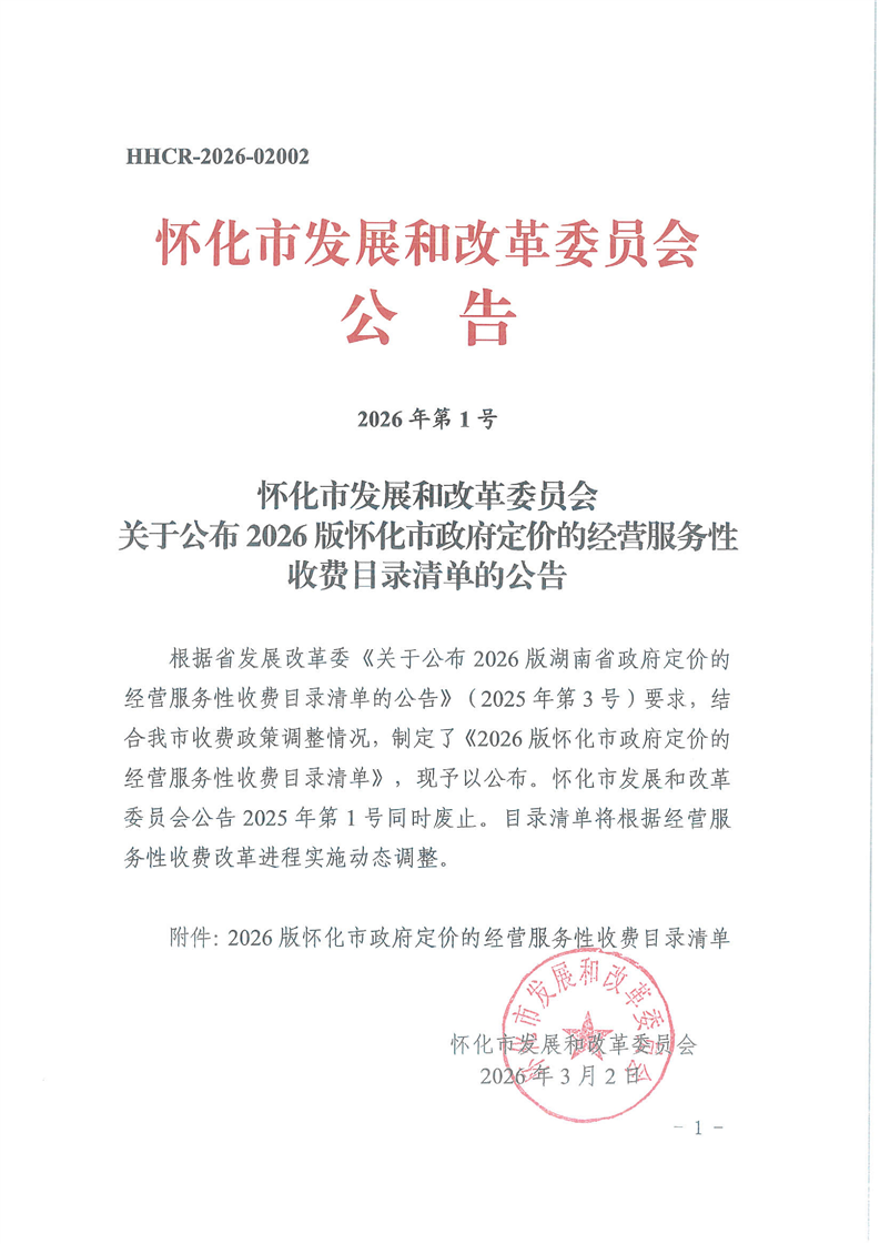 (公告第1号)关于公布2026版怀化市政府定价的经营服务性收费目录清单的公告.pdf