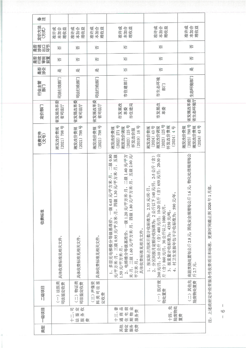 怀化市发展和改革委员会关于公布2026版怀化市政府定价的经营服务性收费目录清单的公告