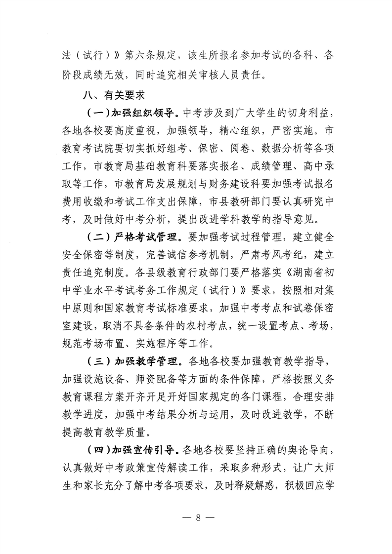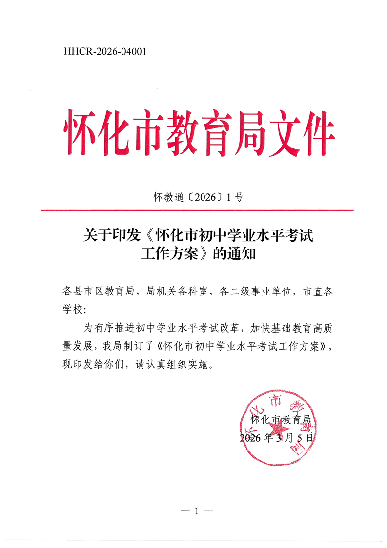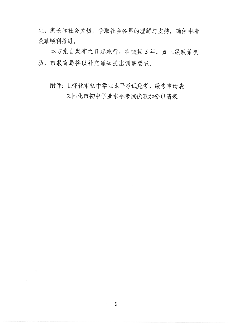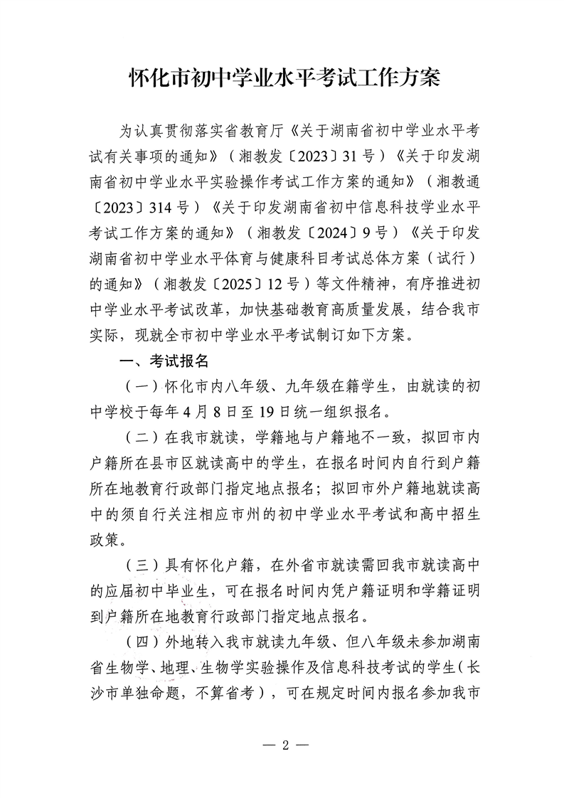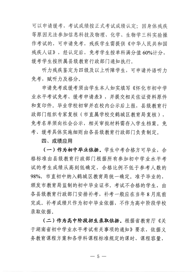 关于印发《怀化市初中学业水平考试工作方案》的通知