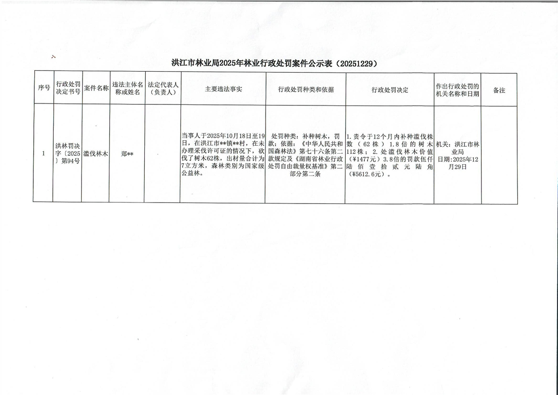 洪江市林业局2025年林业行政处罚案件公示表(20251229)