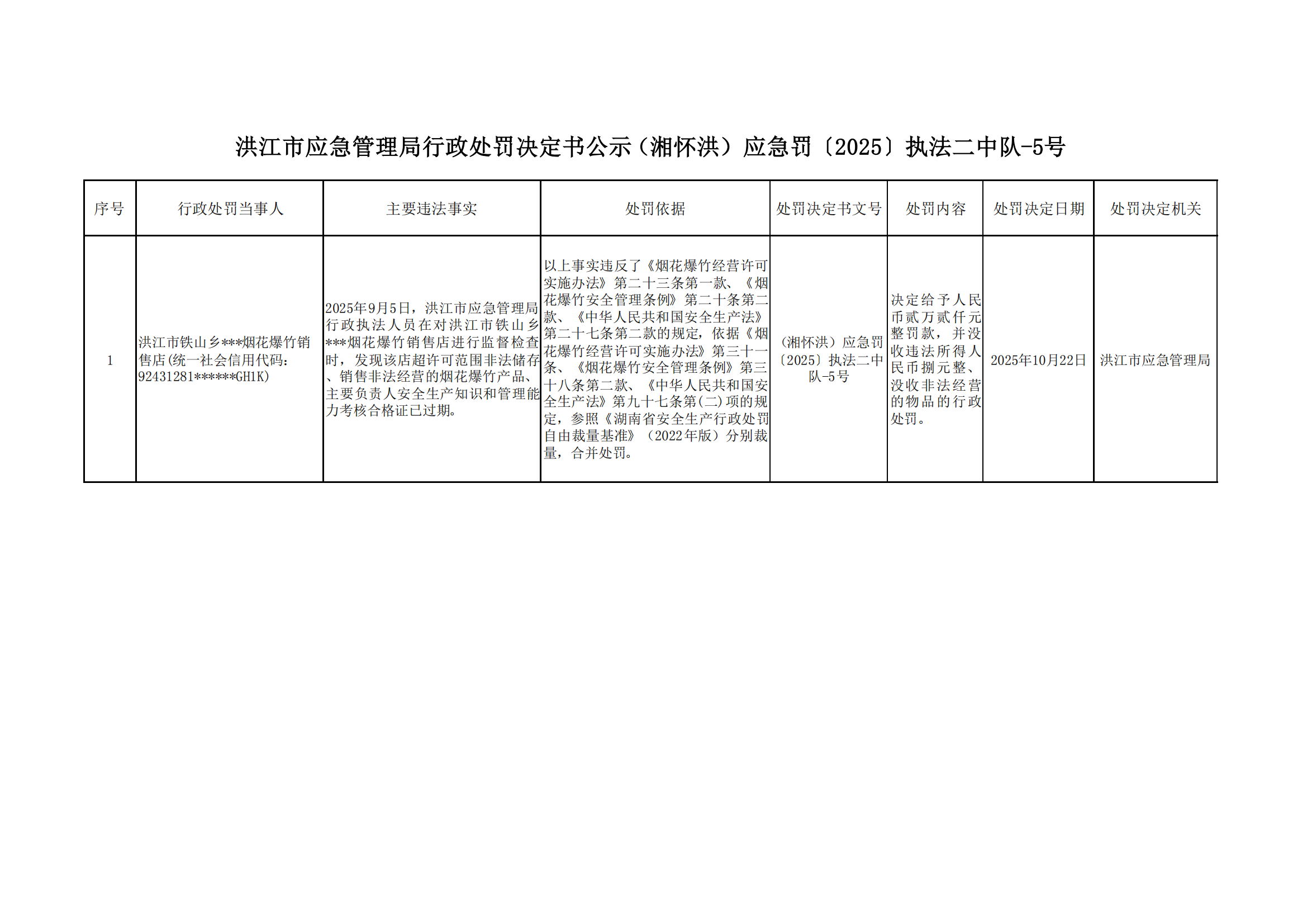 洪江市应急管理局行政处罚决定书(湘怀洪)应急罚〔2025〕执法二中队-5号
