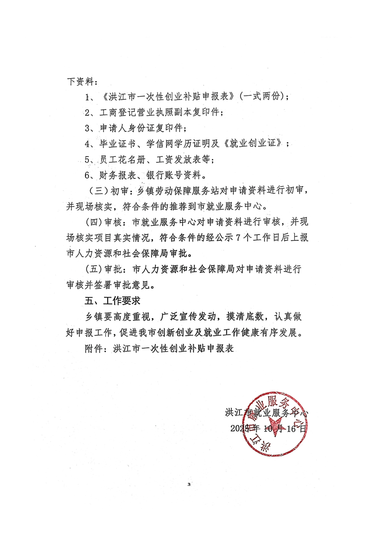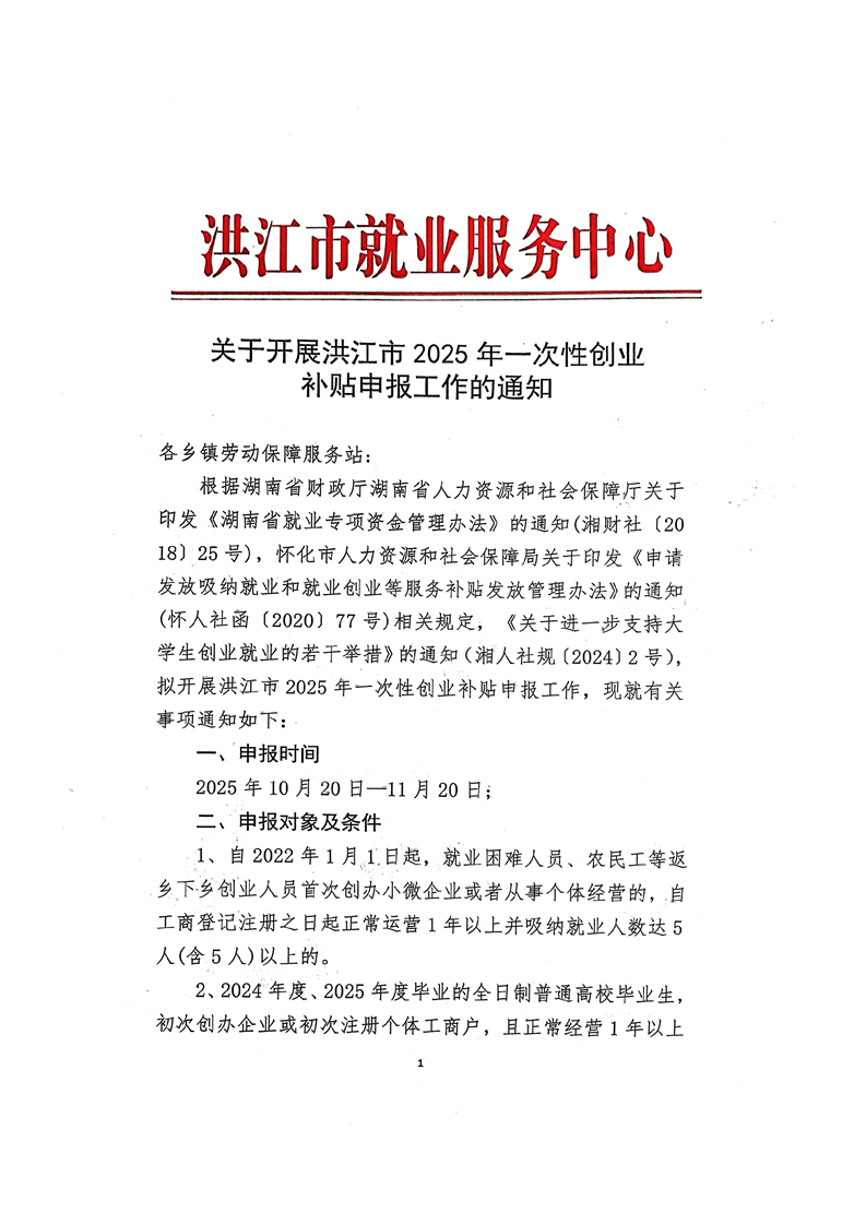 关于开展洪江市2025年一次性创业补贴申报工作的通知