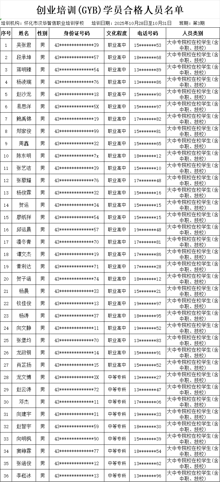 洪江创培3期合格人员名单(公示)