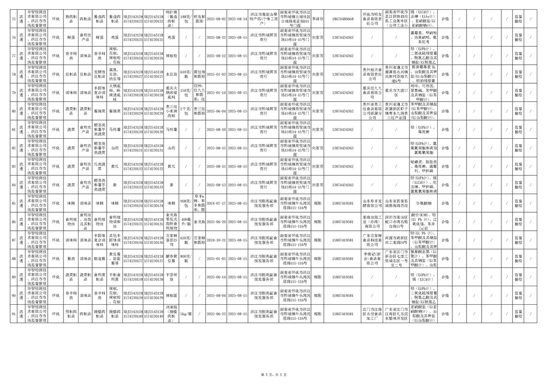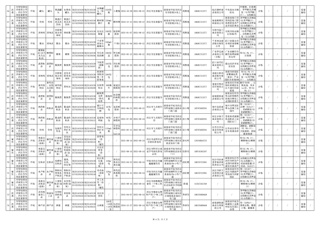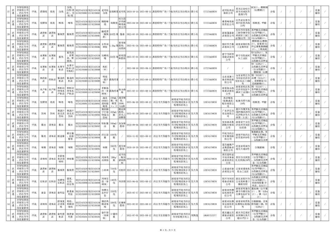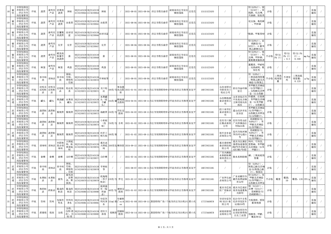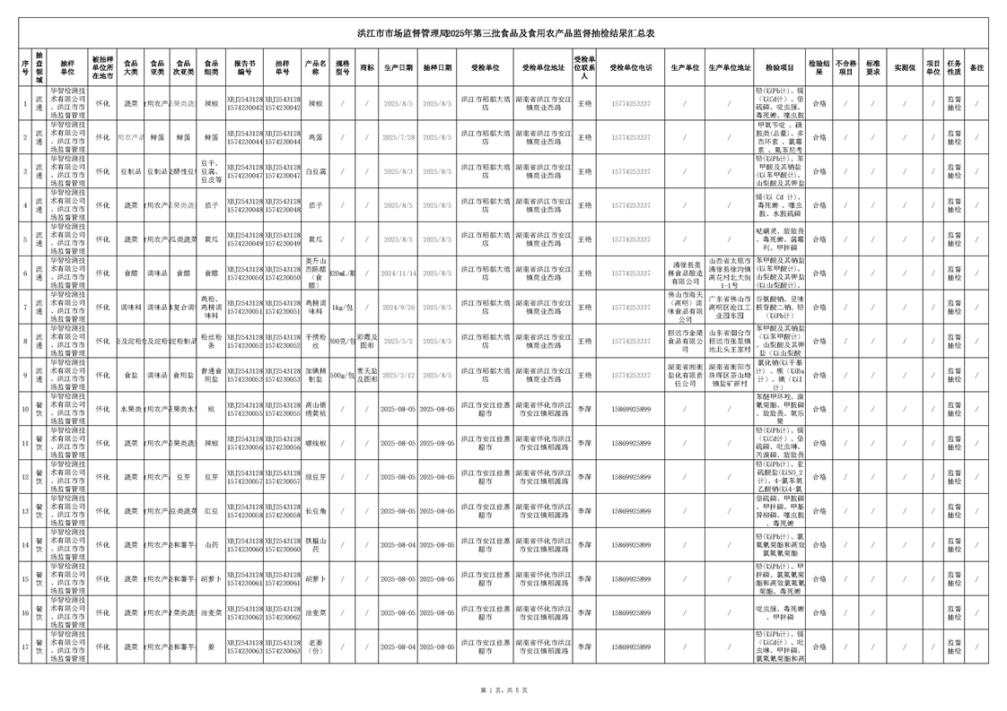 洪江市市场监督管理局2025年第三批食品及食用农产品监督抽检结果汇总表