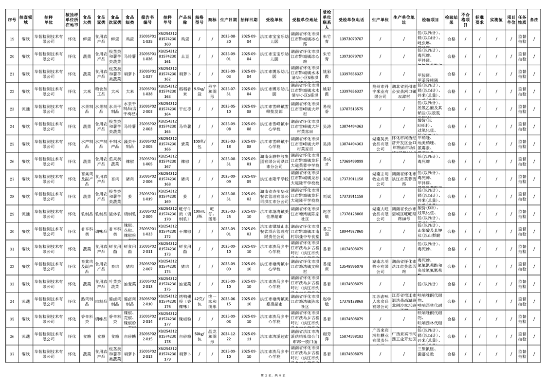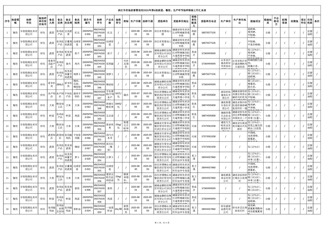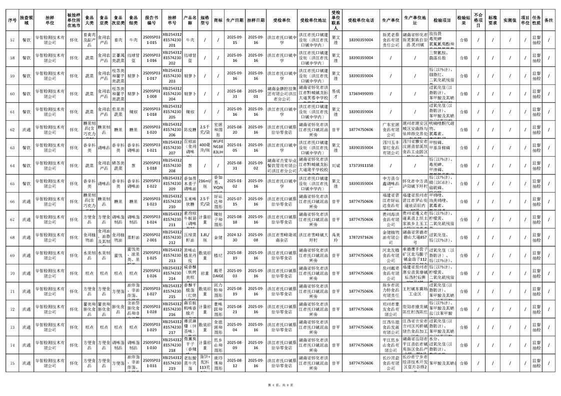 洪江市市场监督管理局2025年第4批流通、餐饮、生产环节抽样检验工作汇总表