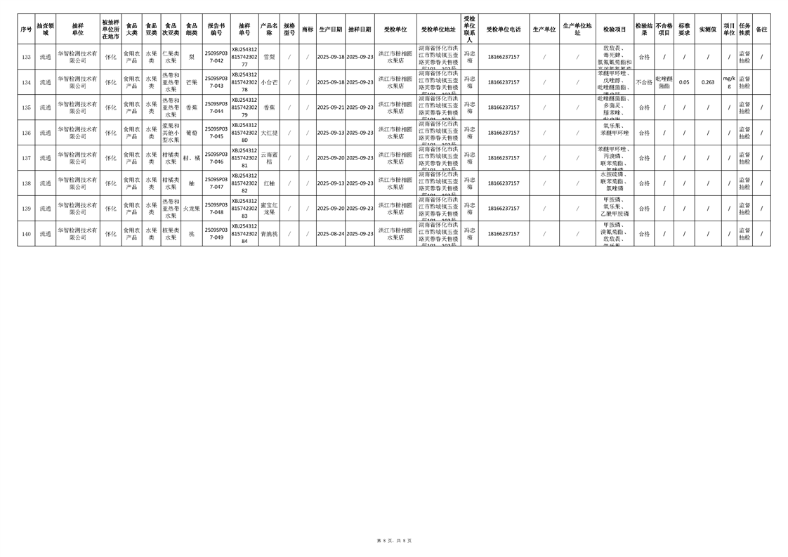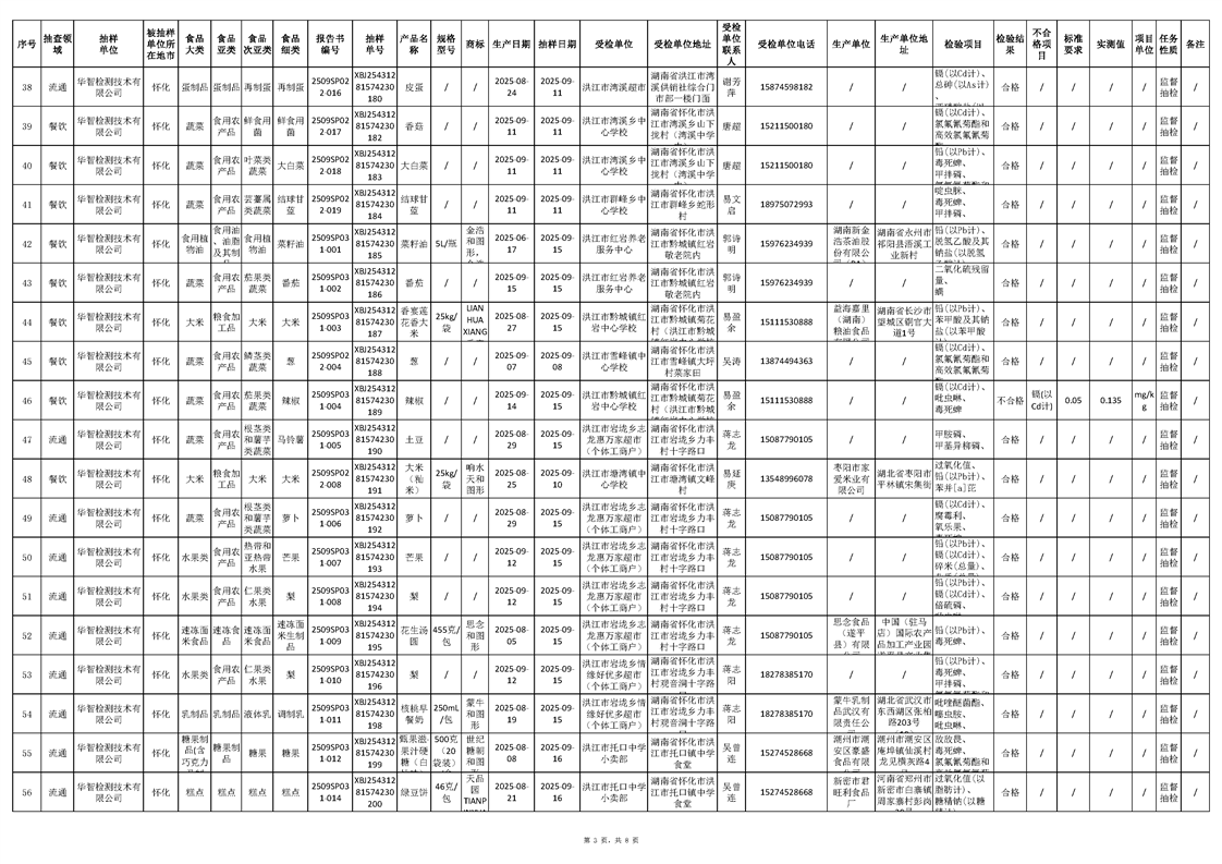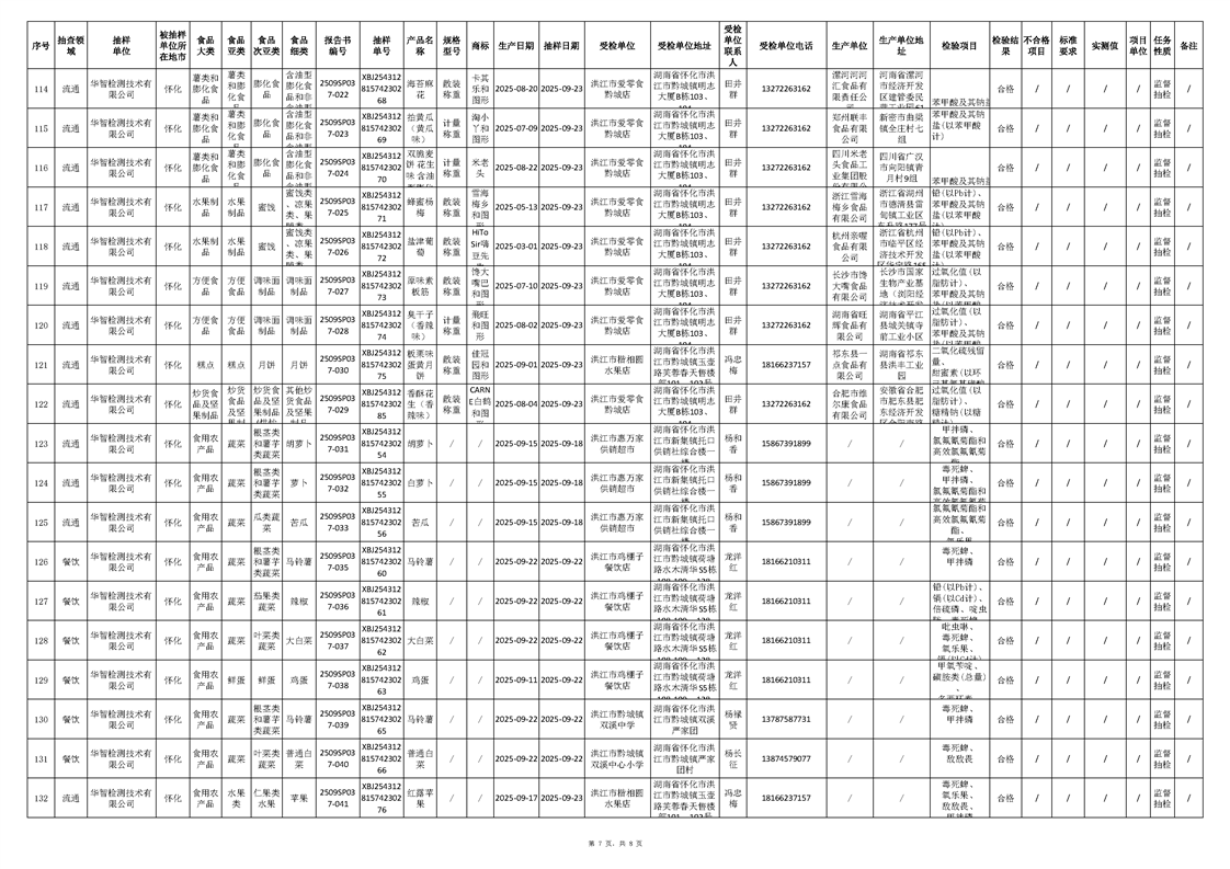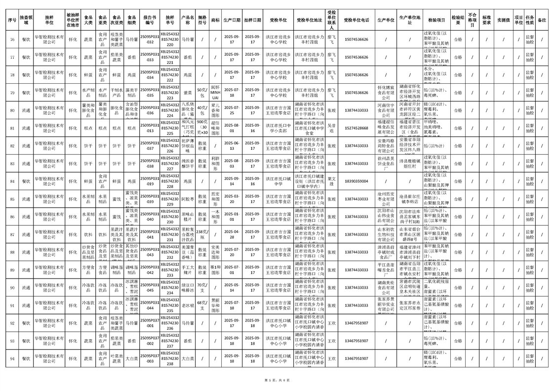 洪江市市场监督管理局2025年第4批流通、餐饮、生产环节抽样检验工作汇总表