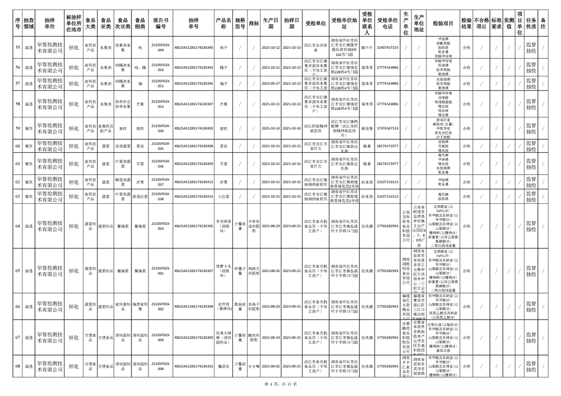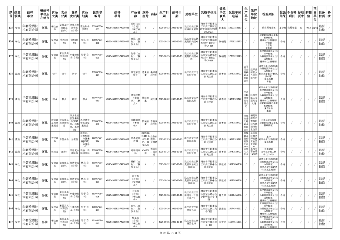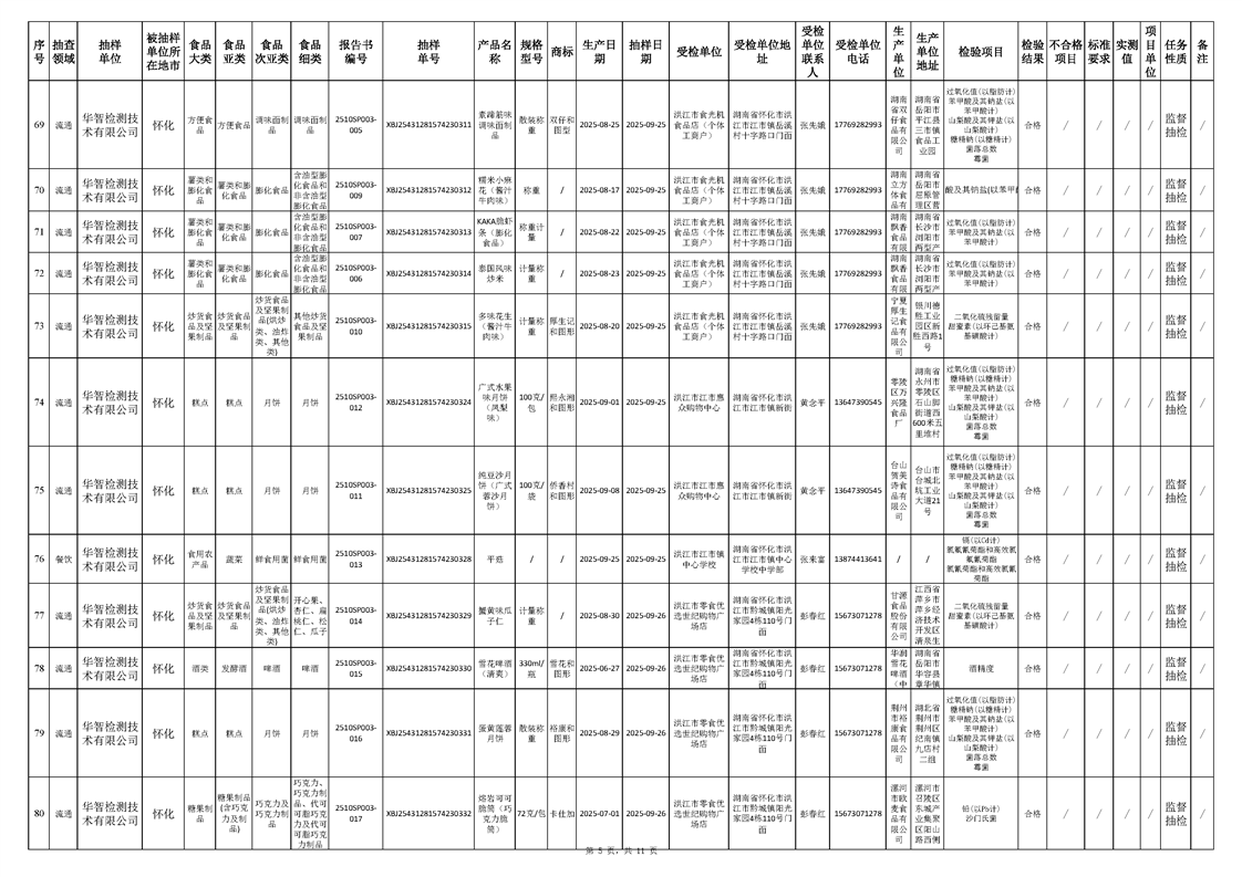 洪江市市场监督管理局2025年第五批次食品及食用农产品监督抽检结果汇总表