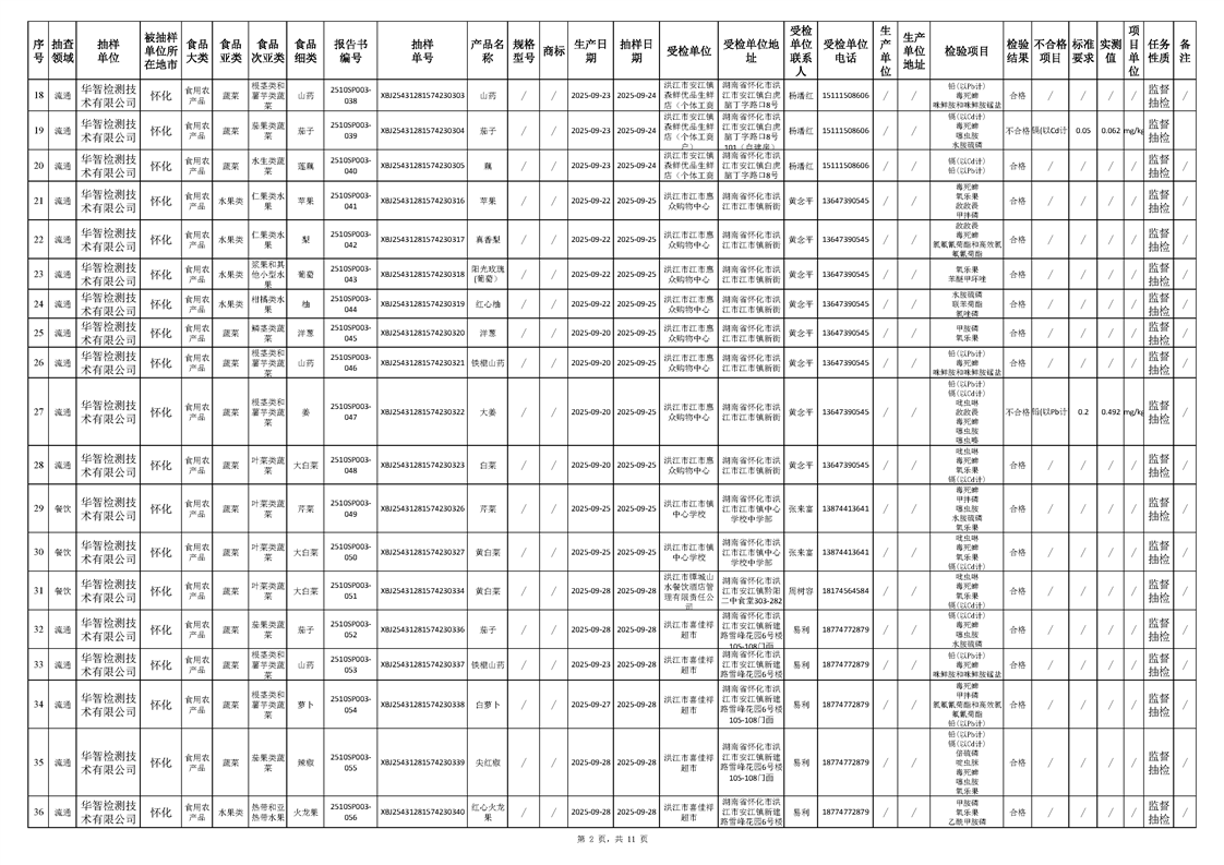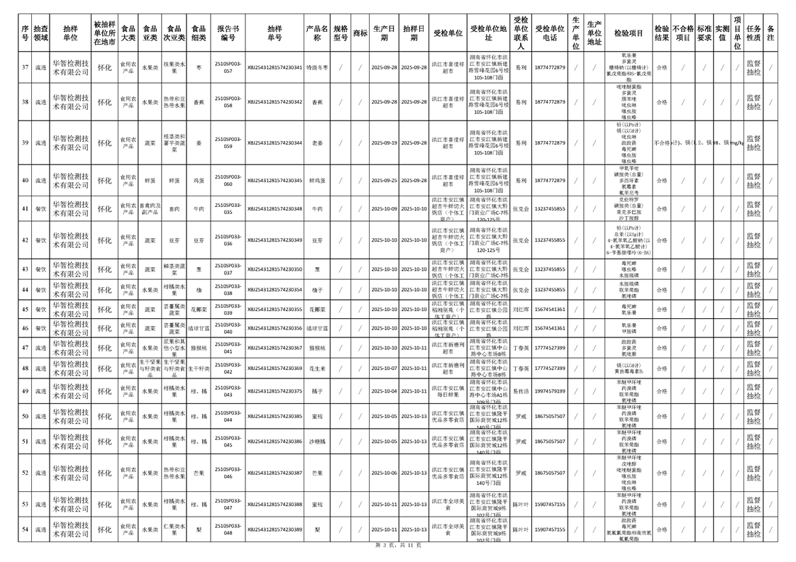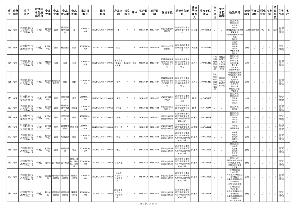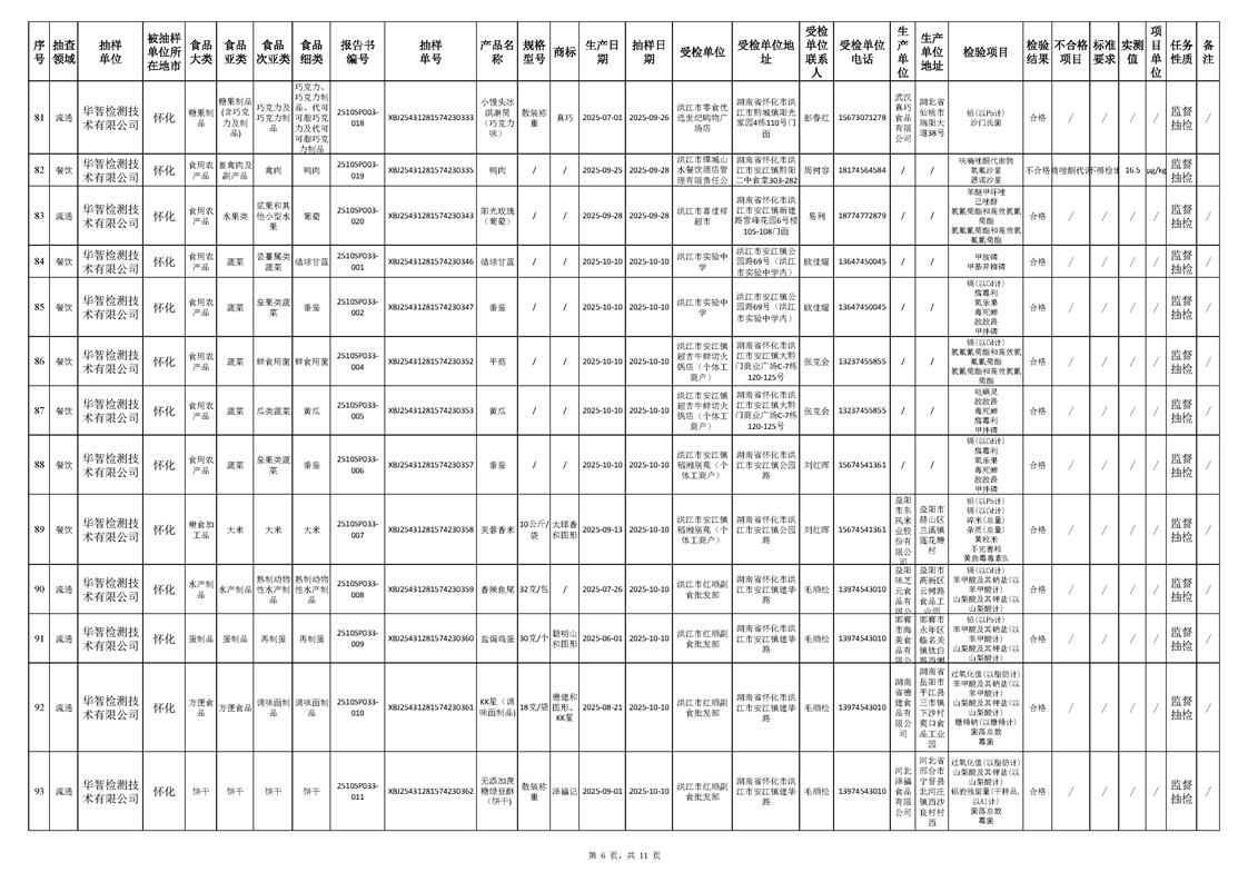 洪江市市场监督管理局2025年第五批次食品及食用农产品监督抽检结果汇总表