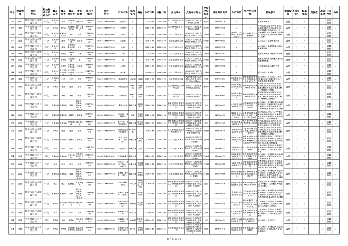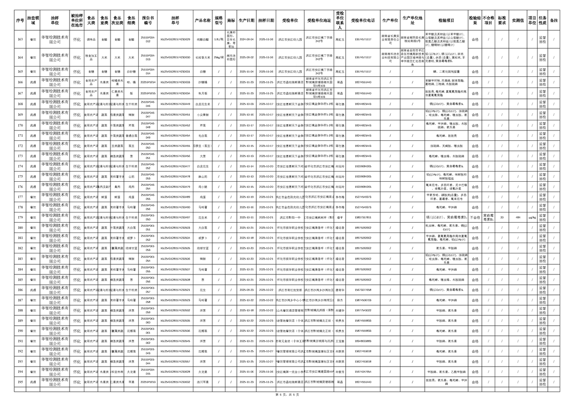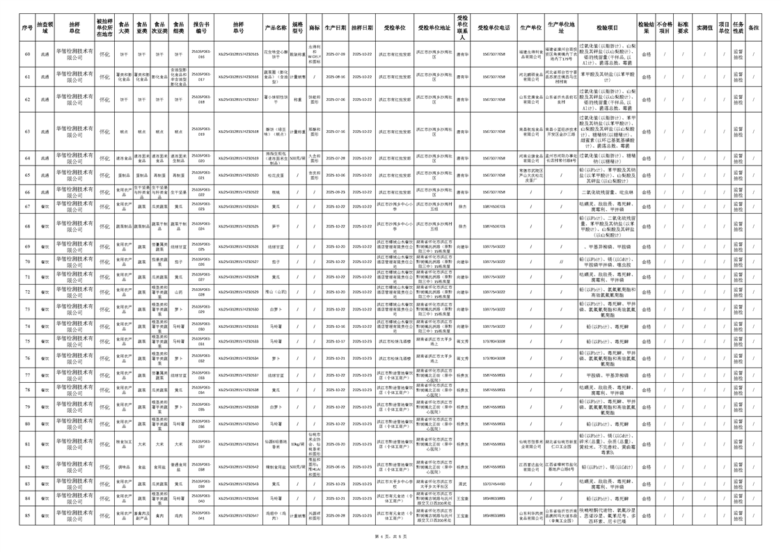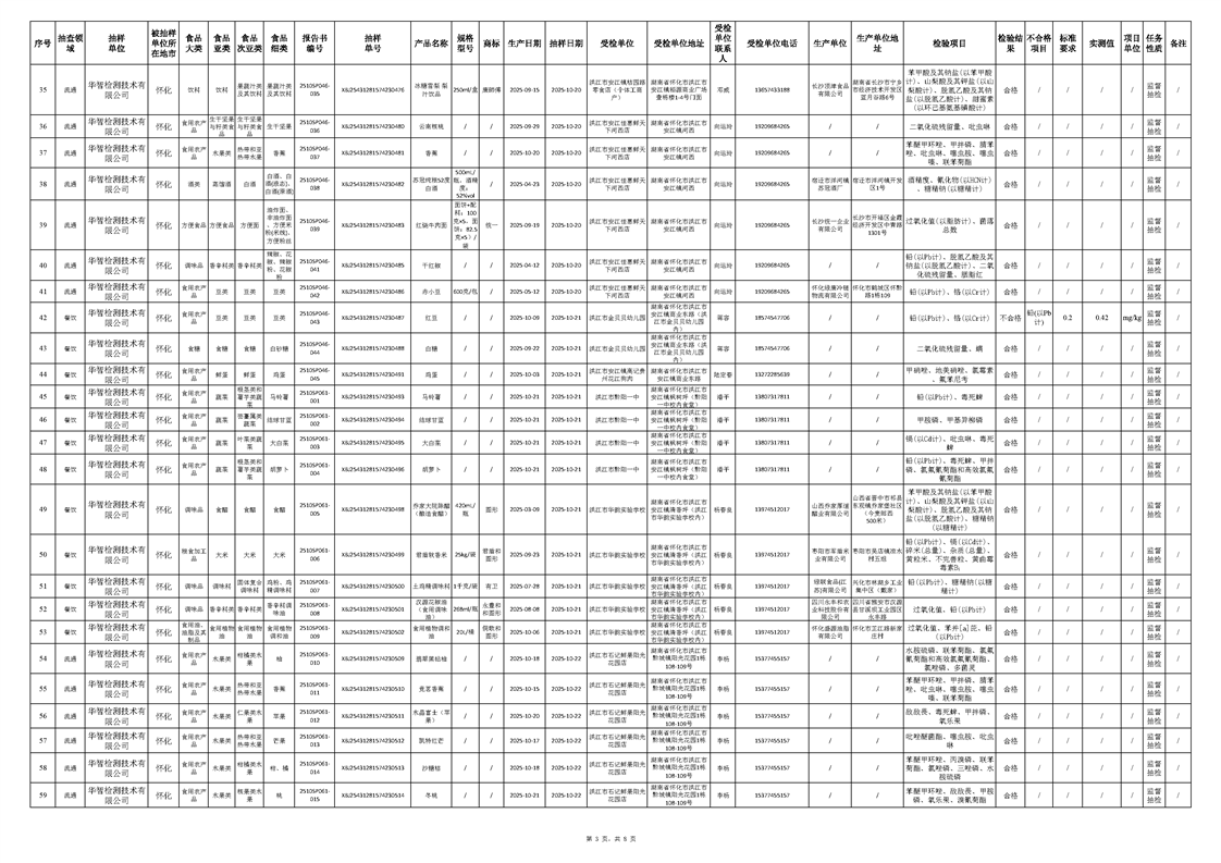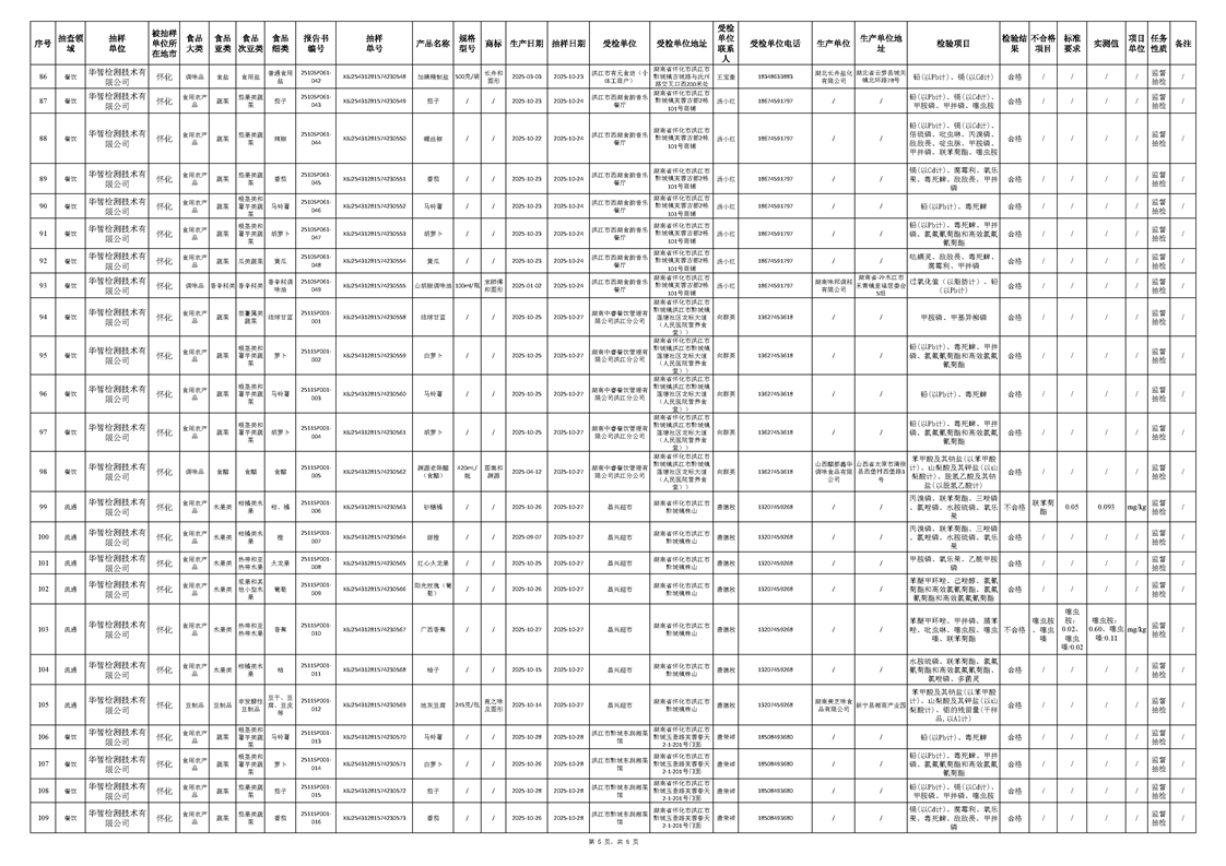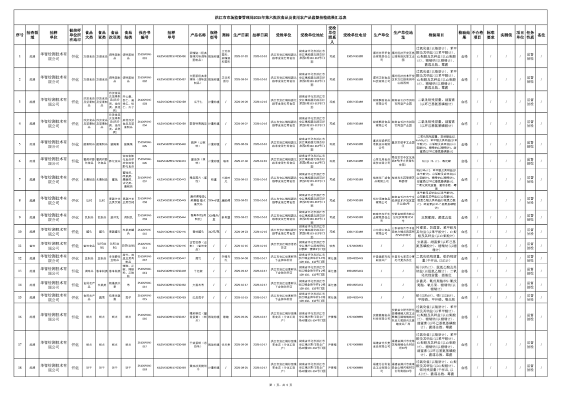 洪江市市场监督管理局2025年第六批次食品及食用农产品监督抽检结果汇总表