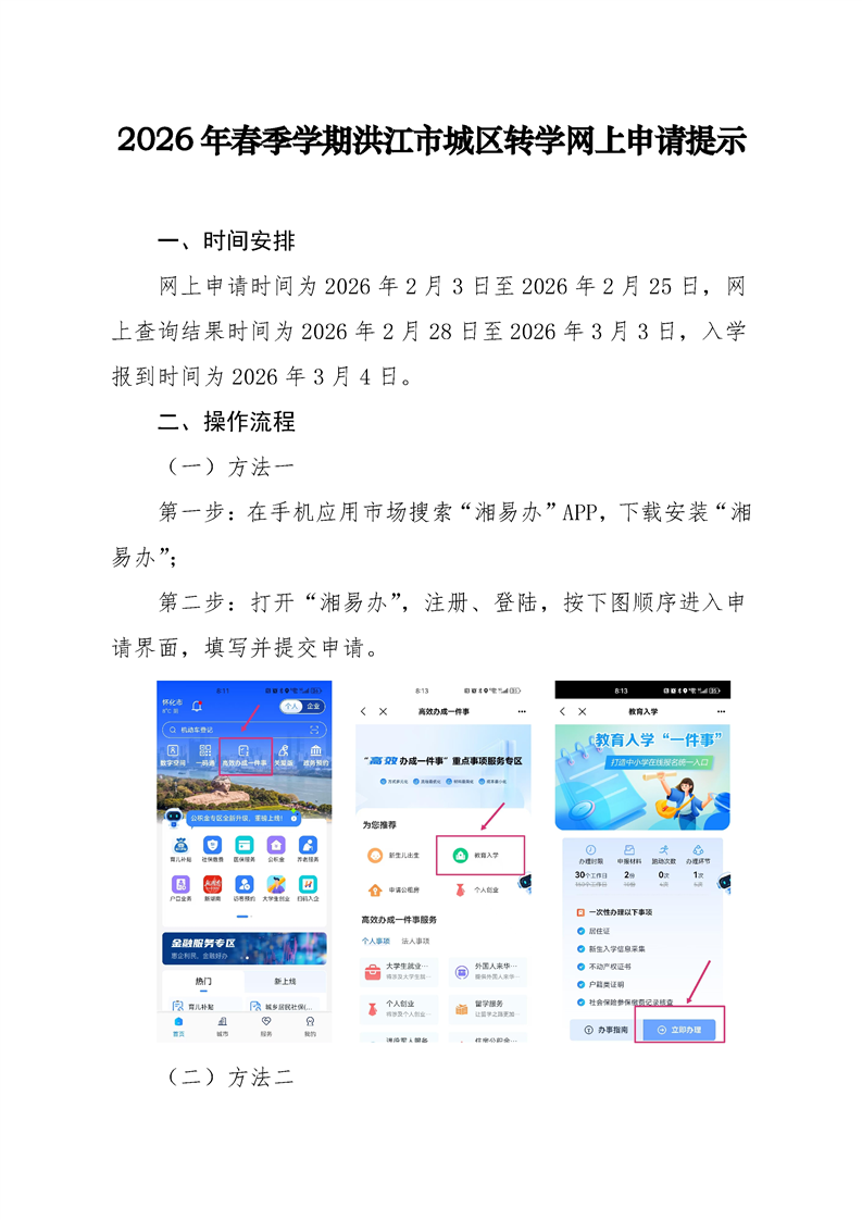 2026年春季学期洪江市城区转学网上申请提示