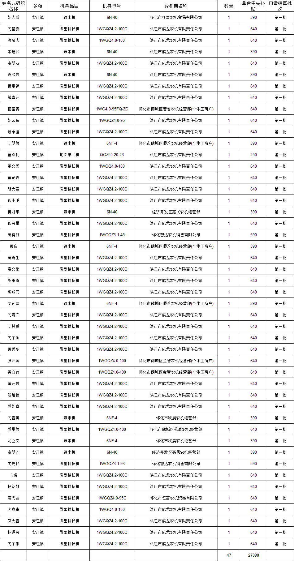 安江镇2026年第一批农机购置补贴资金公示表