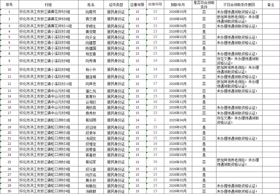 湖南省洪江市安江镇2026年3月基本养老保险待遇领取人员名单公示