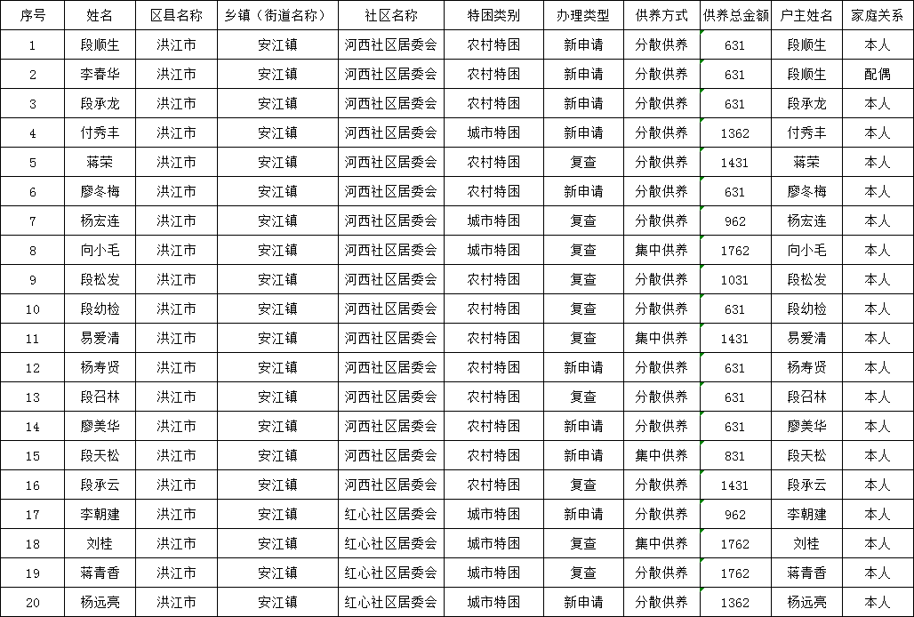 安江镇2025年9月特困人员供养人员名单公示表.xlsx
