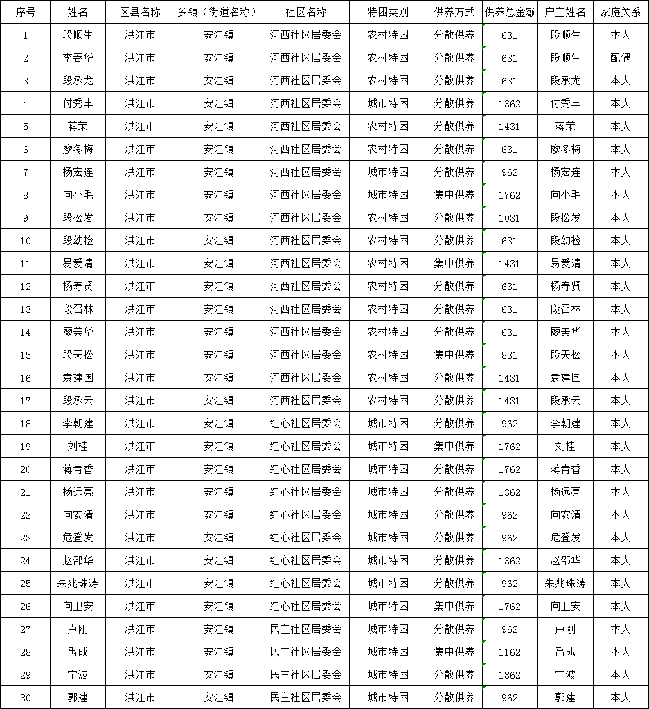 安江镇2025年10月特困人员供养人员名单公示表.xlsx
