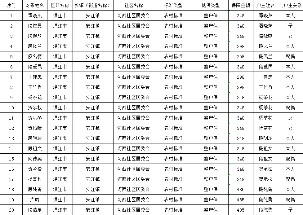 安江镇2025年11月农村低保人员公示名单