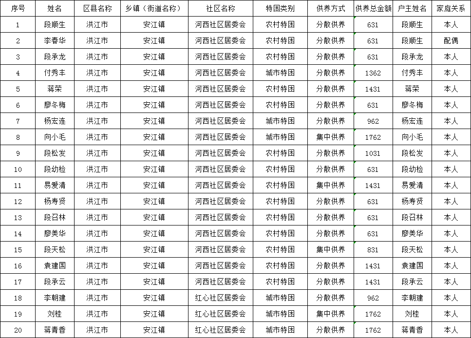 安江镇2026年1月特困人员供养人员名单公示表.xlsx