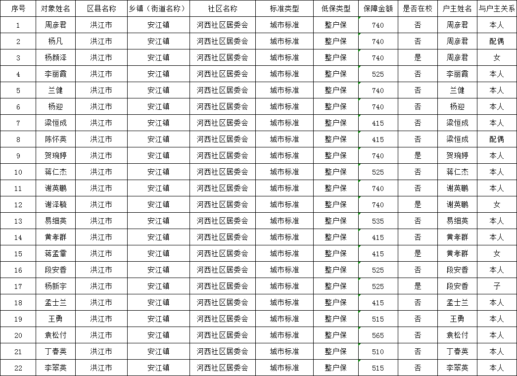 安江镇2026年2月城市低保人员公示名单