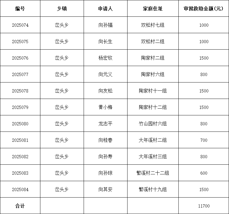 洪江市岔头乡2025年12月份乡镇临时救助汇总表