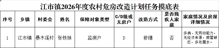 江市镇2026年度农村危房改造计划任务摸底表