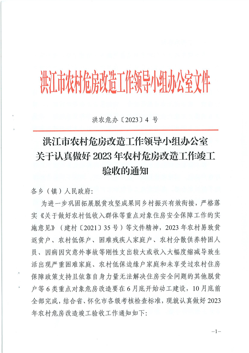 洪农危办〔2023〕4号关于认真做好2023年农村危房改造工作竣工验收的通知
