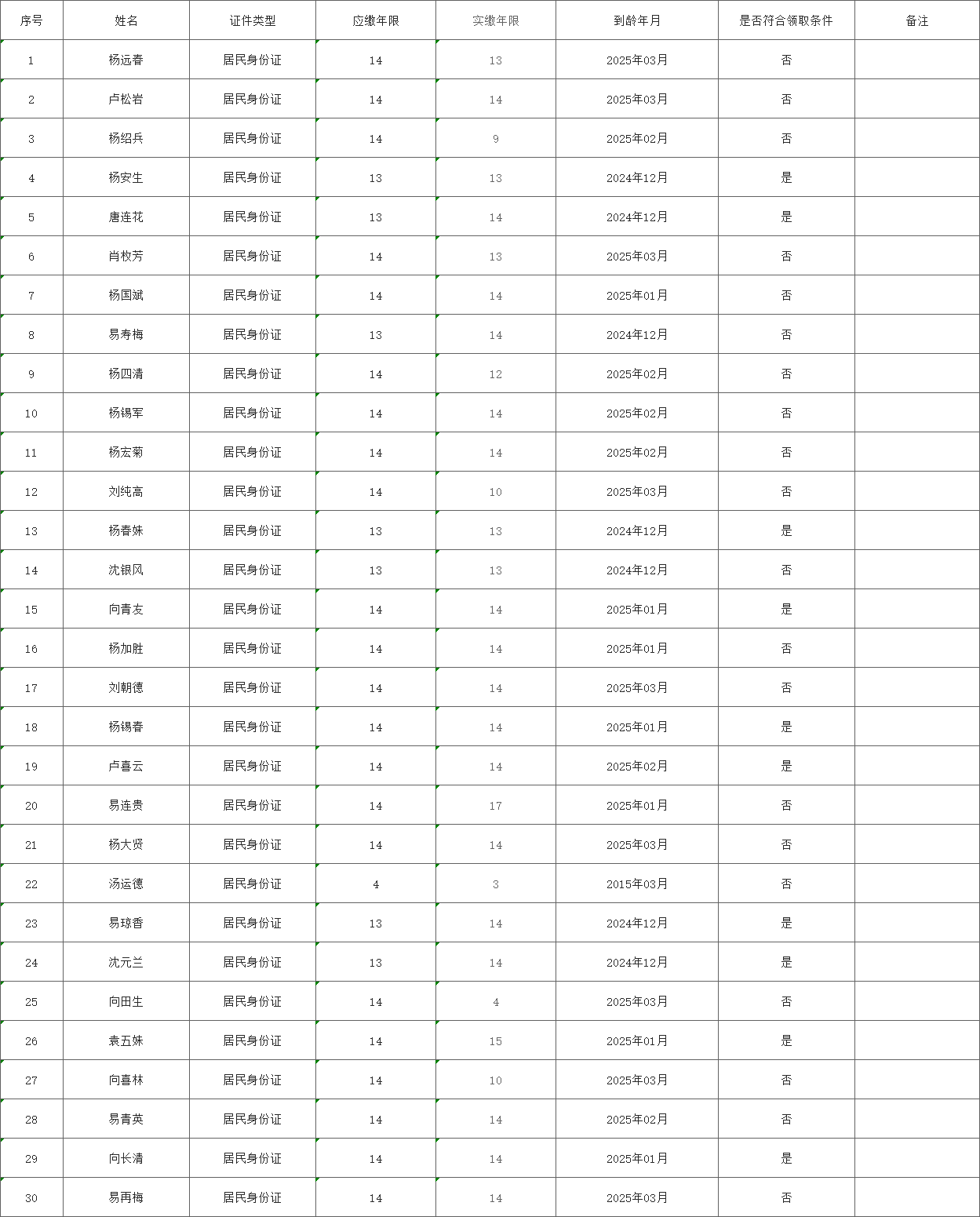 湖南省洪江市雪峰镇2025年1月基本养老保险待遇领取人员名单公示