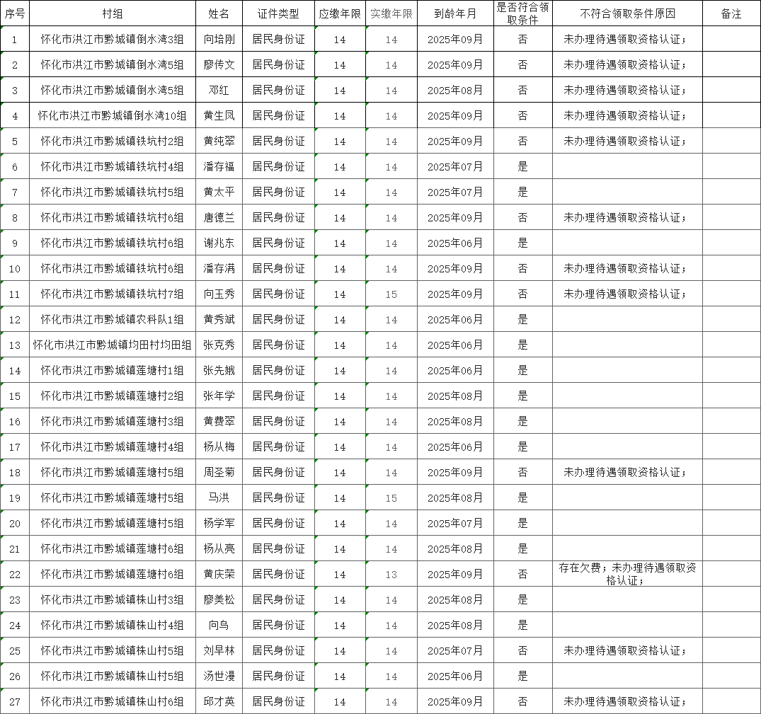 湖南省洪江市黔城镇2025年7月基本养老保险待遇领取人员名单公示