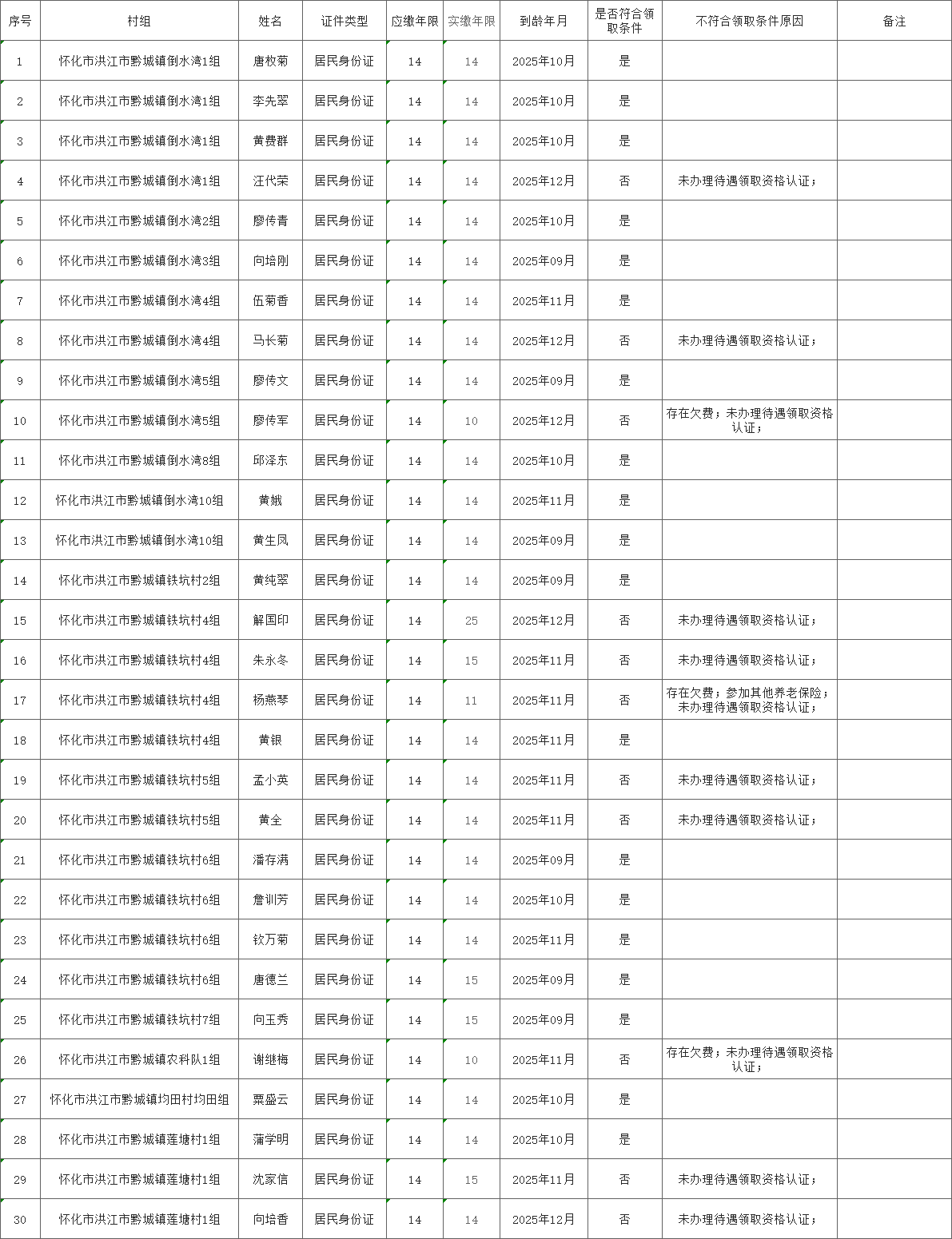 湖南省洪江市黔城镇2025年10月基本养老保险待遇领取人员名单公示