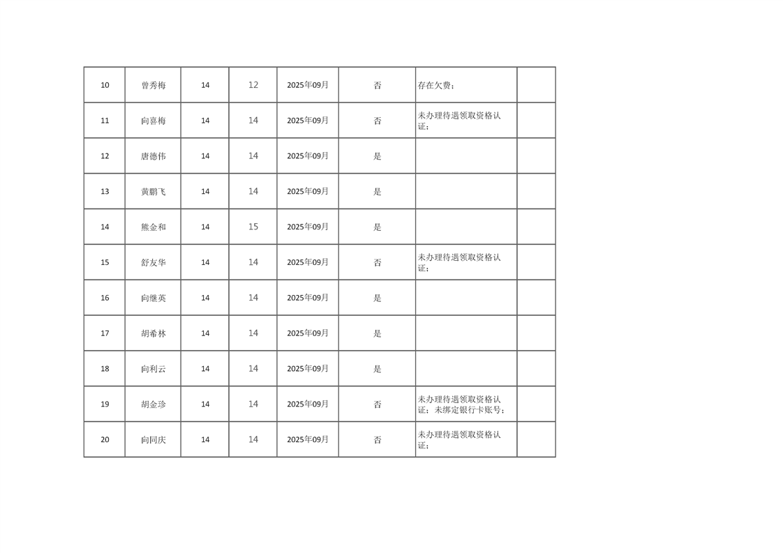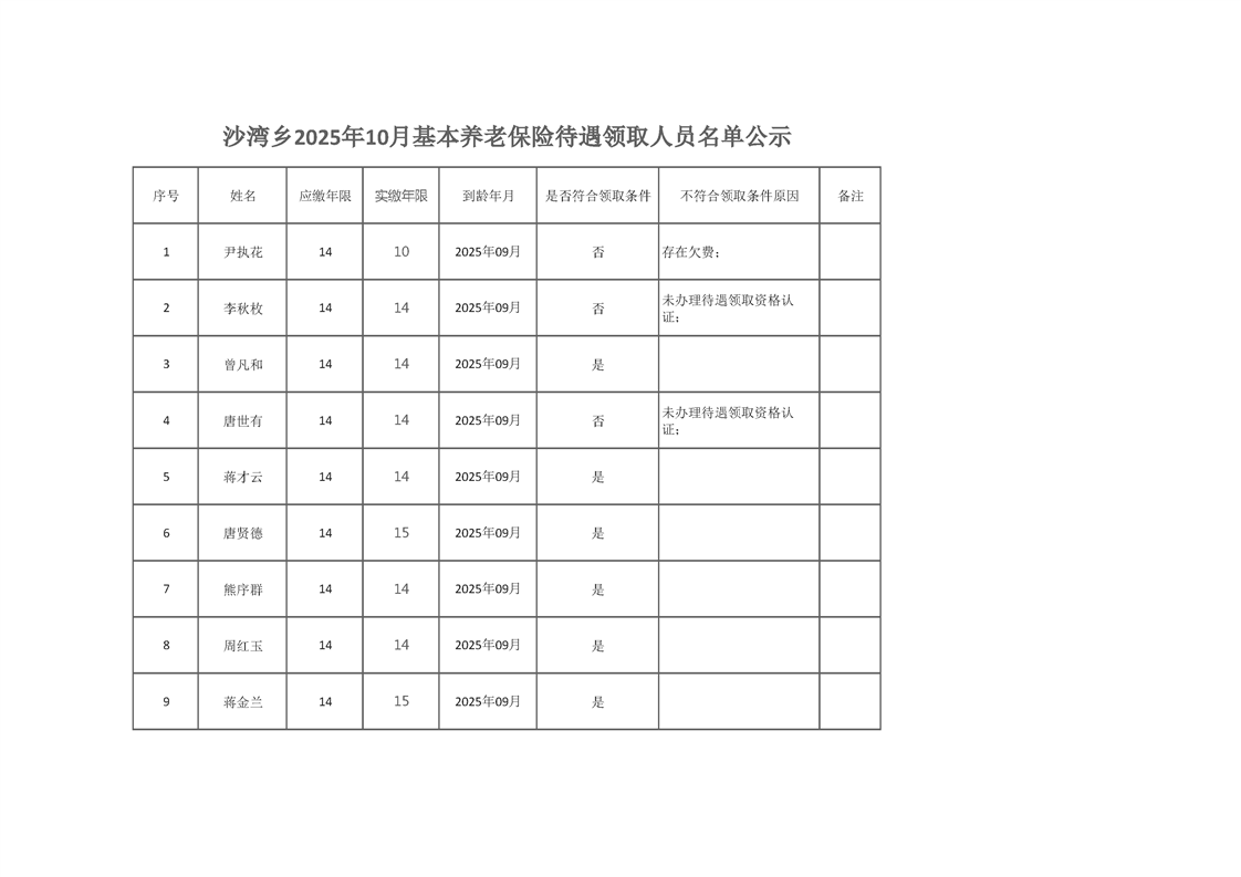 沙湾乡2025年10月基本养老保险待遇领取人员名单公示