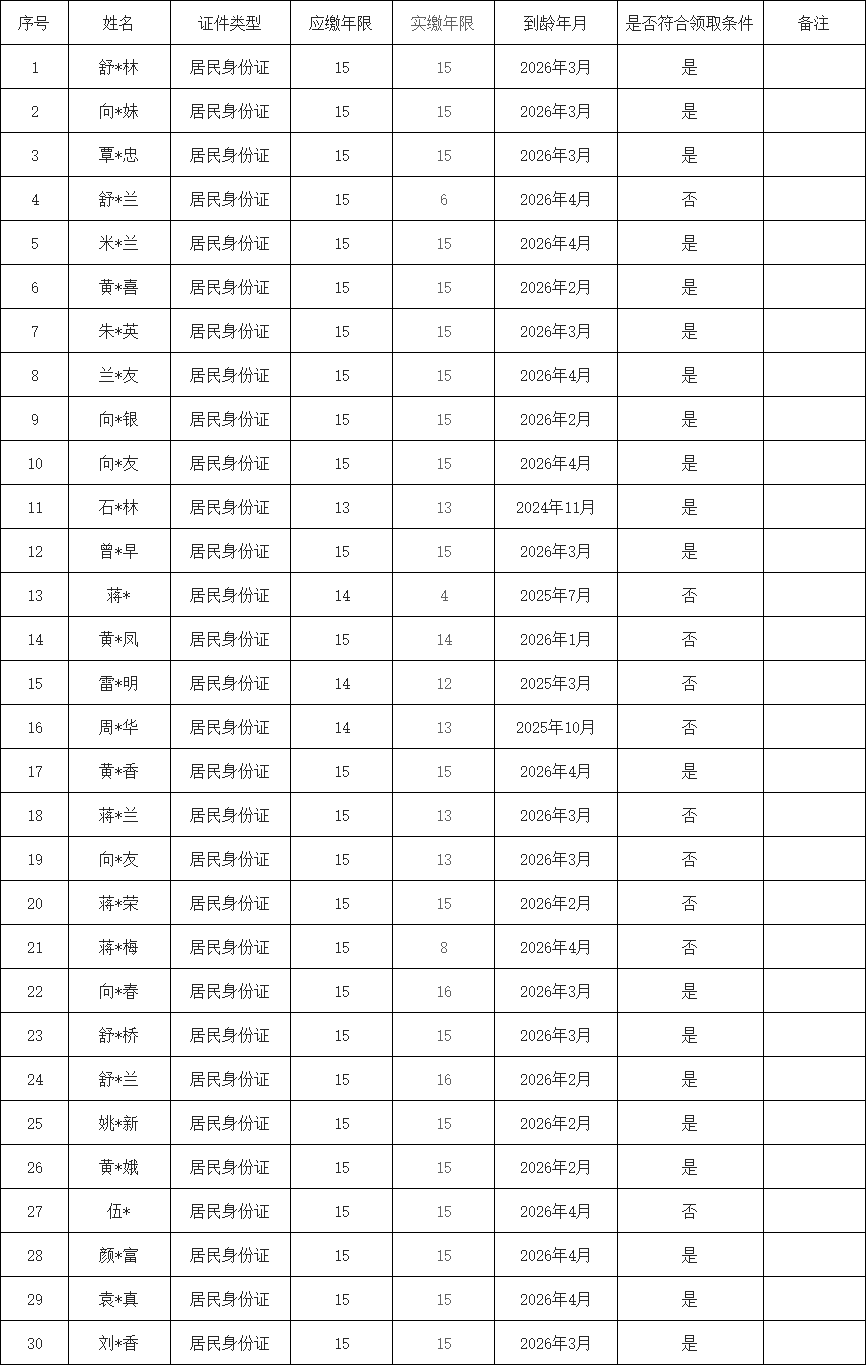 2026年3月深渡苗族乡城乡基本养老保险待遇领取人员名单公示