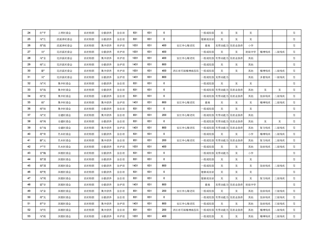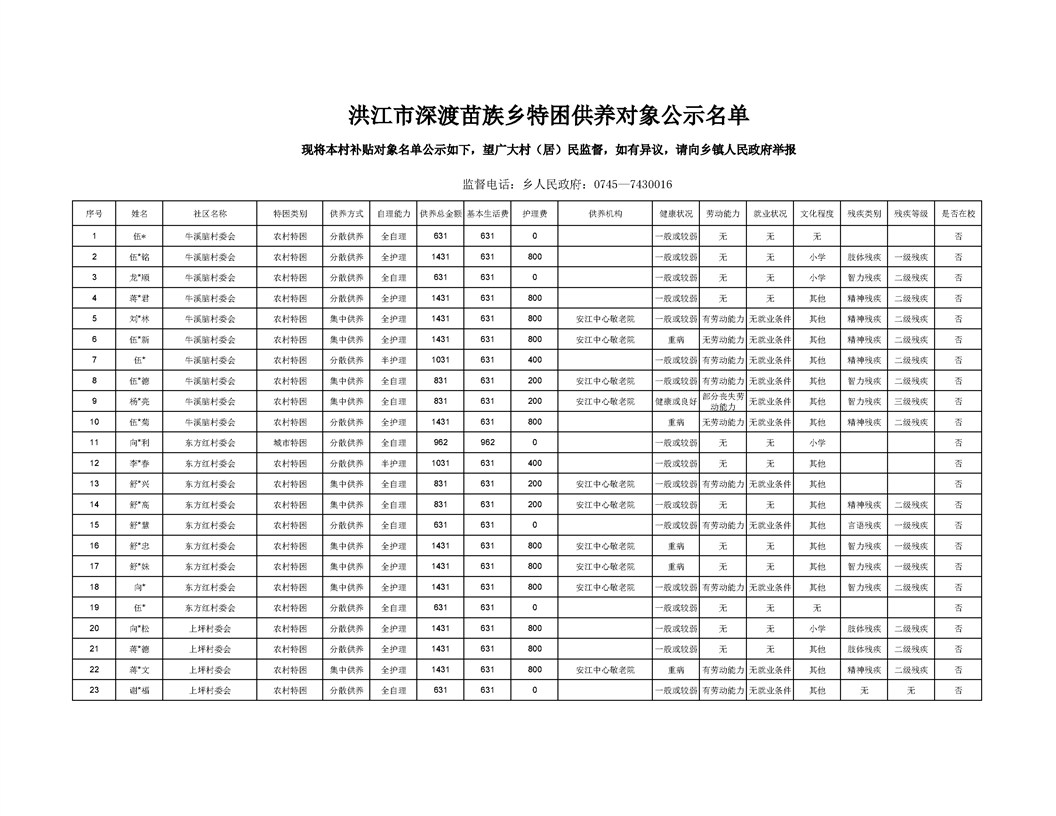 洪江市深渡苗族乡特困供养对象公示名单(8月)