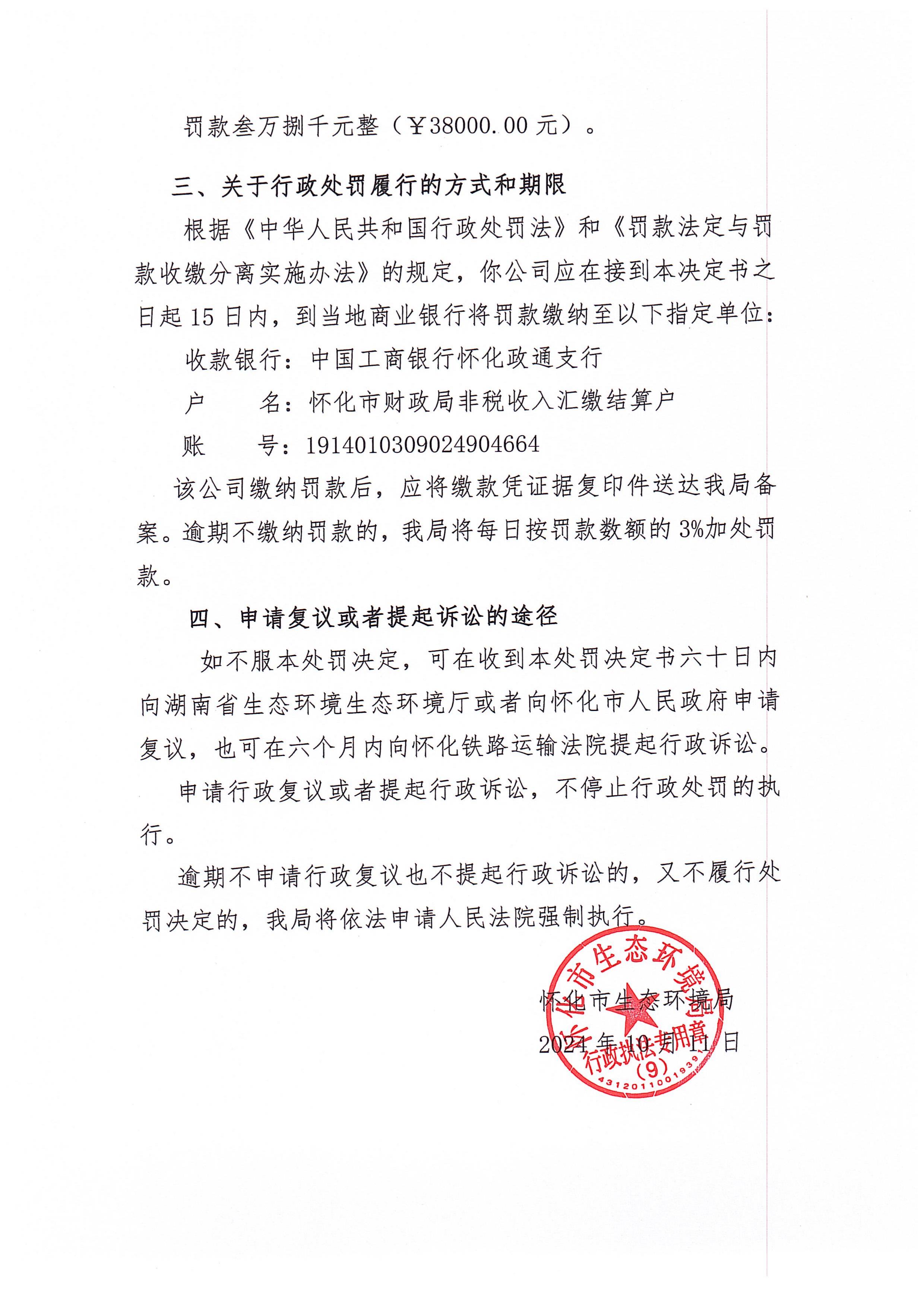 怀化市生态环境局洪江市分局行政处罚决定书怀环洪市罚字〔2024〕3号