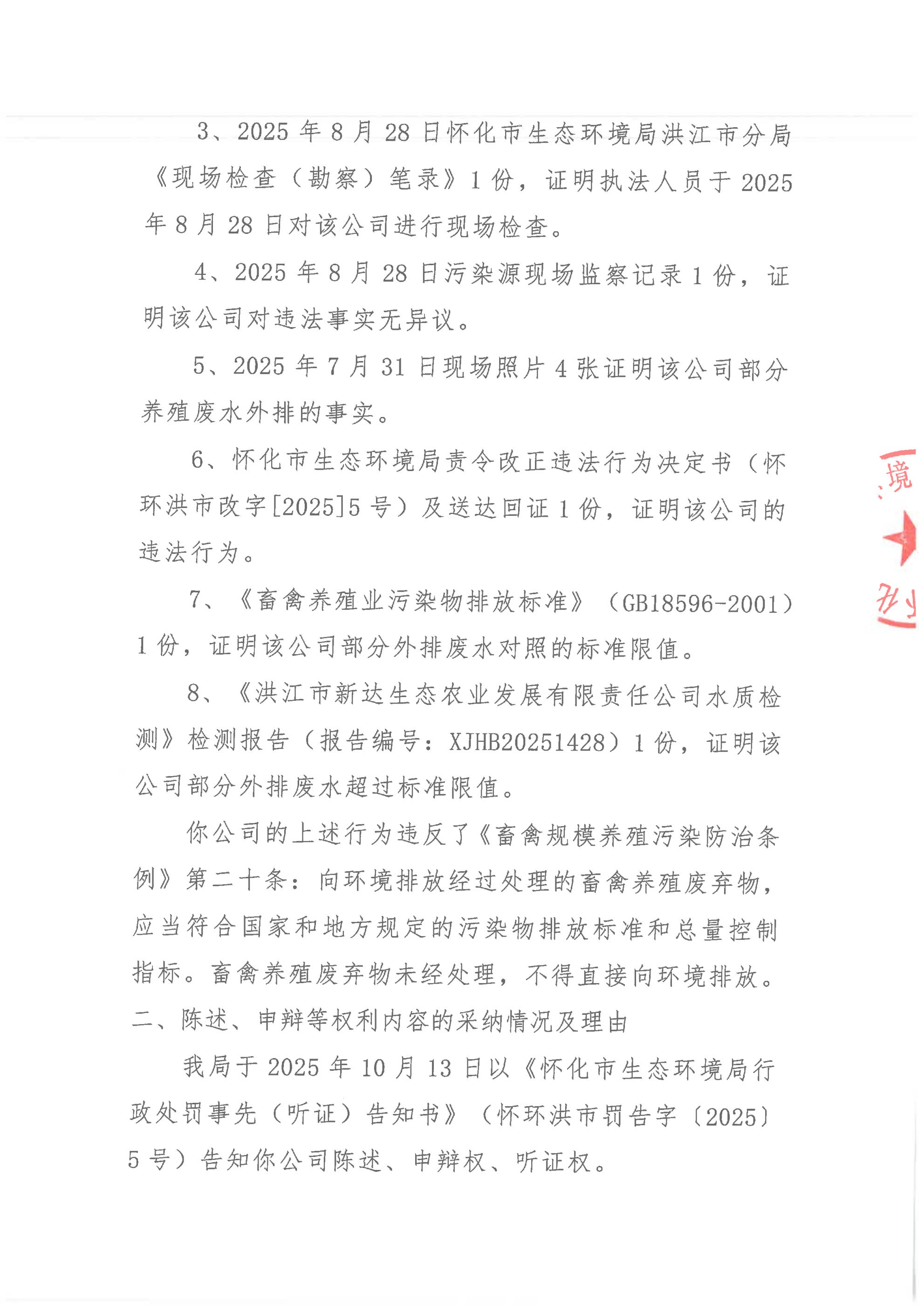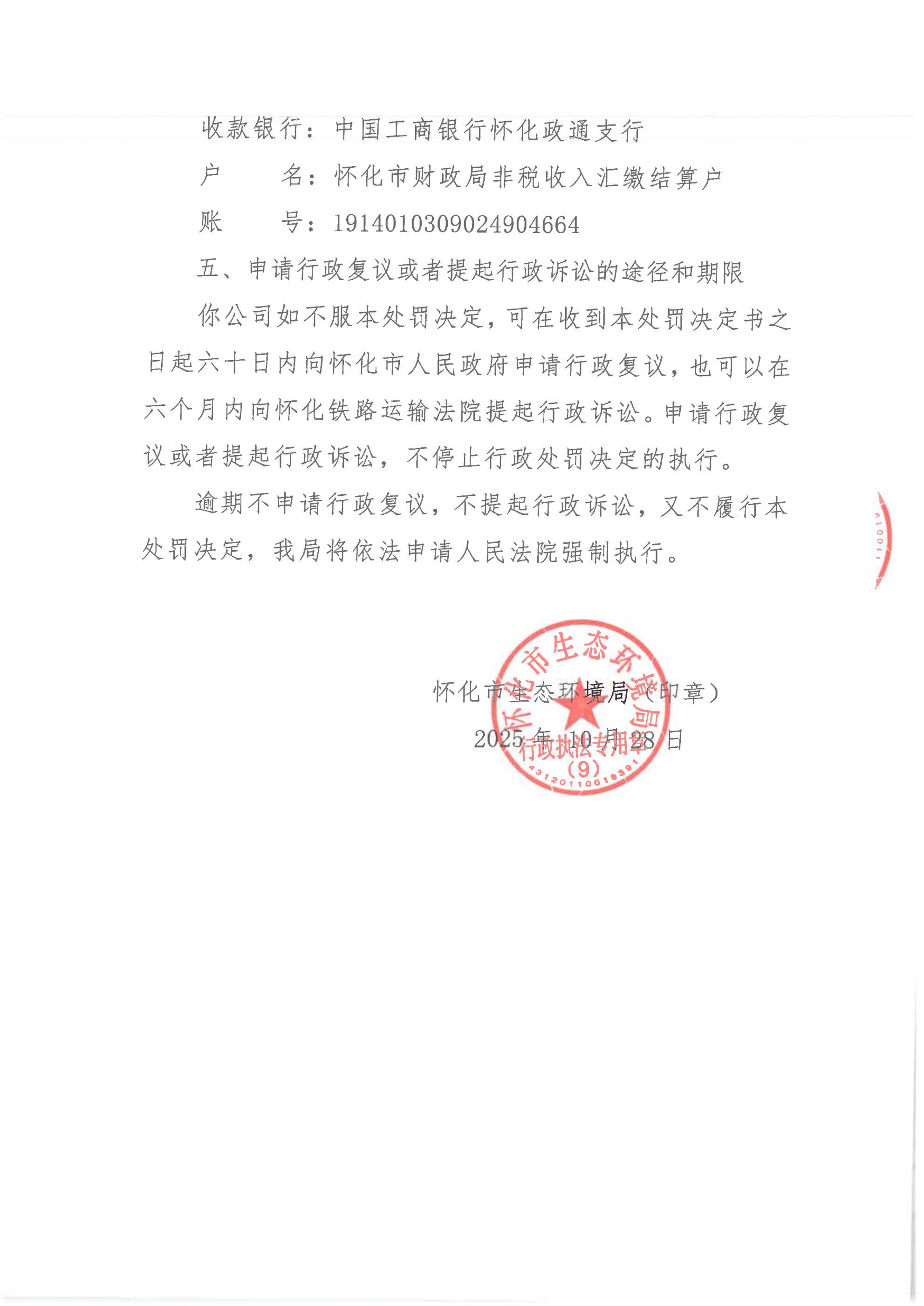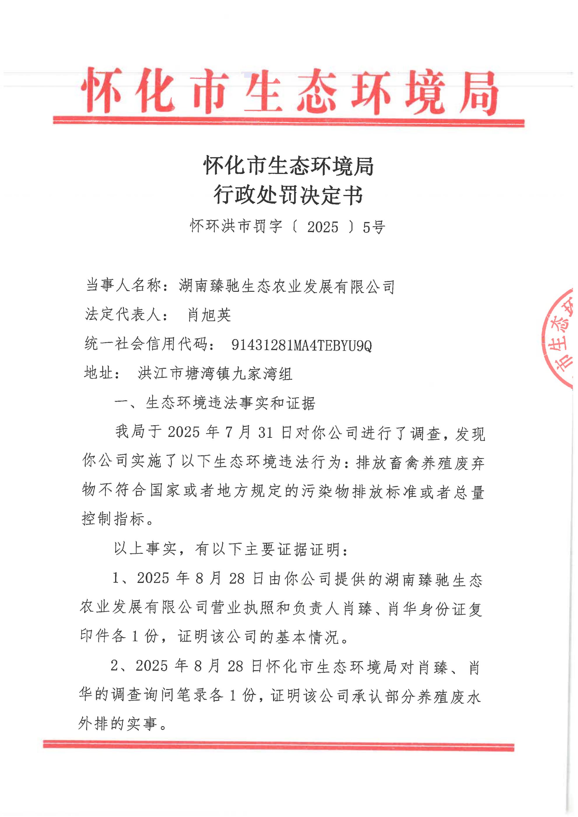 关于对湖南臻驰生态农业发展有限公司行政处罚决定书的公示(怀环洪市罚字〔2025〕5号)