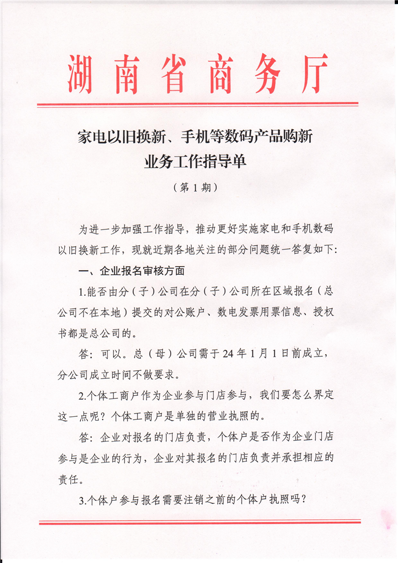 家电以旧换新、手机等数码产品购新业务工作指导单(第1期)