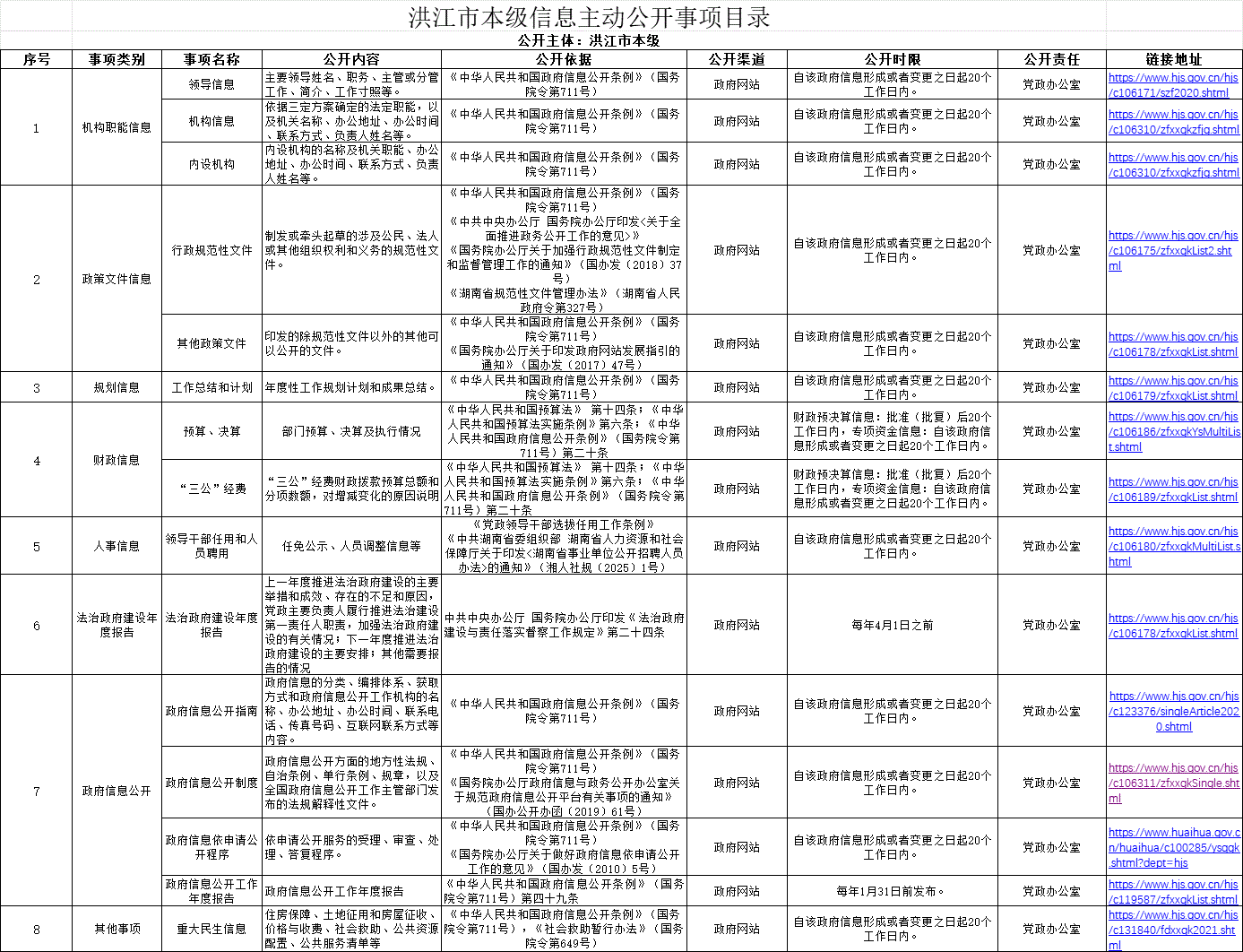 洪江市本级信息主动公开事项目录