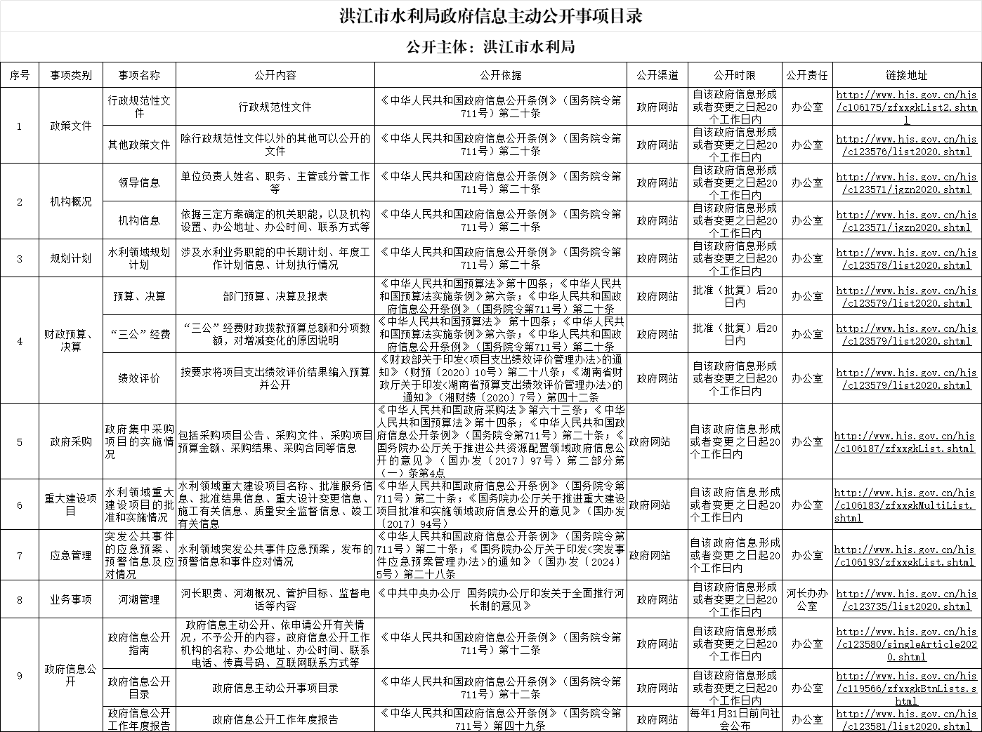 洪江市水利局政府信息主动公开事项目录