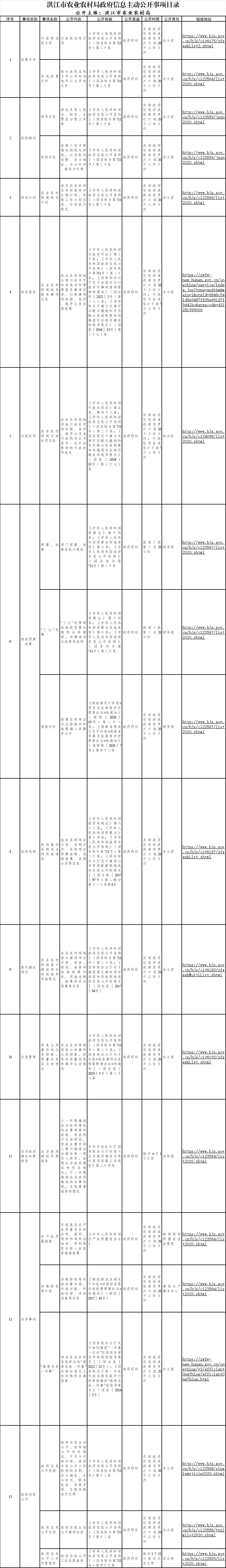 洪江市农业农村局政府信息主动公开事项目录