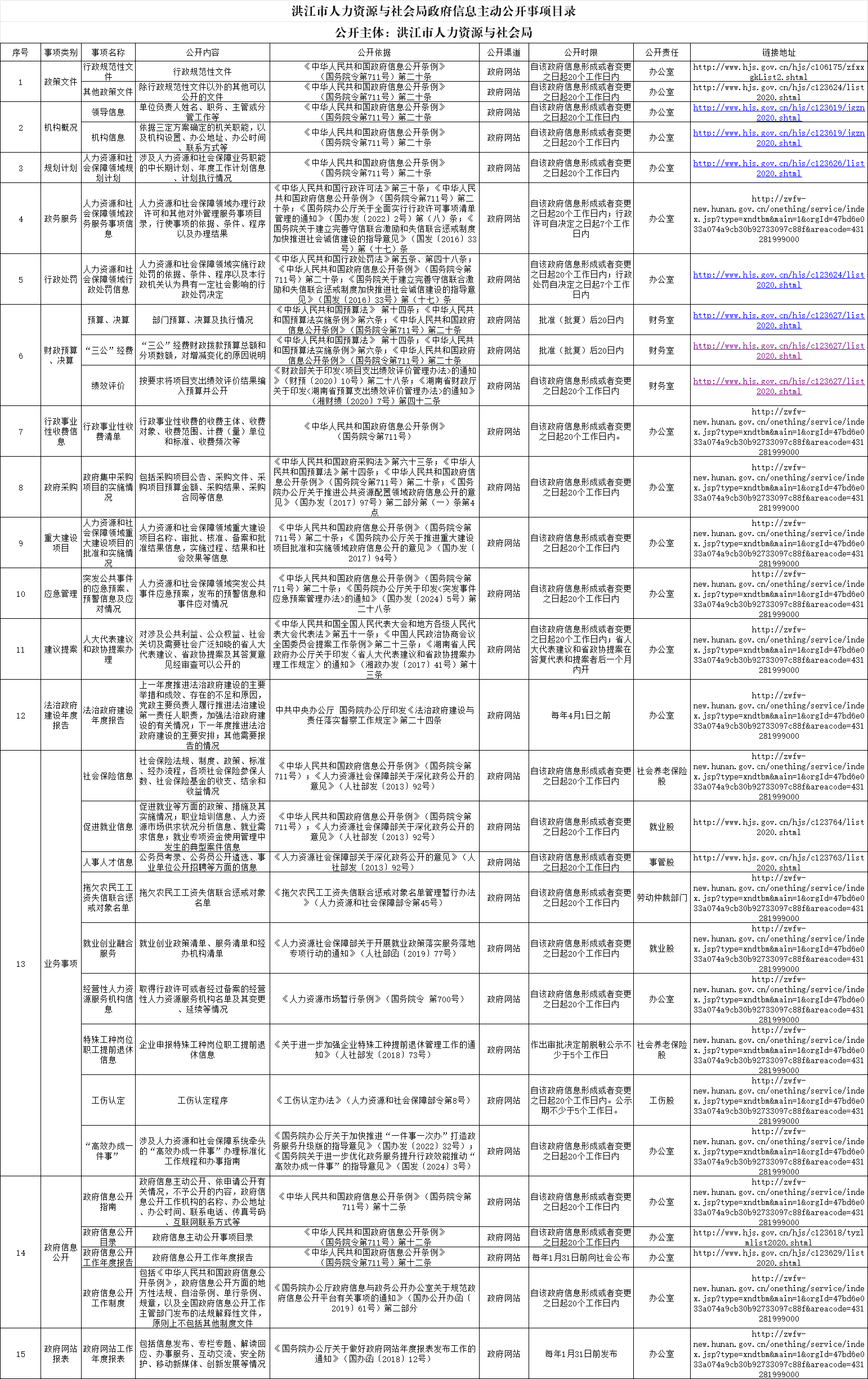 洪江市人力资源与社会局政府信息主动公开事项目录
