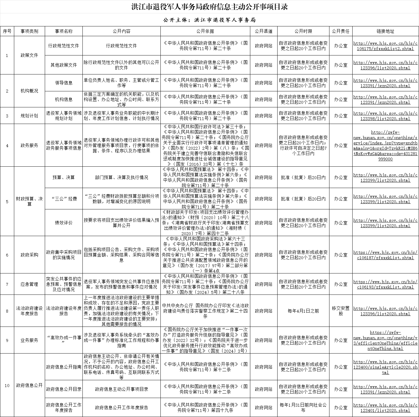 洪江市退役军人事务局政府信息主动公开事项目录.xlsx