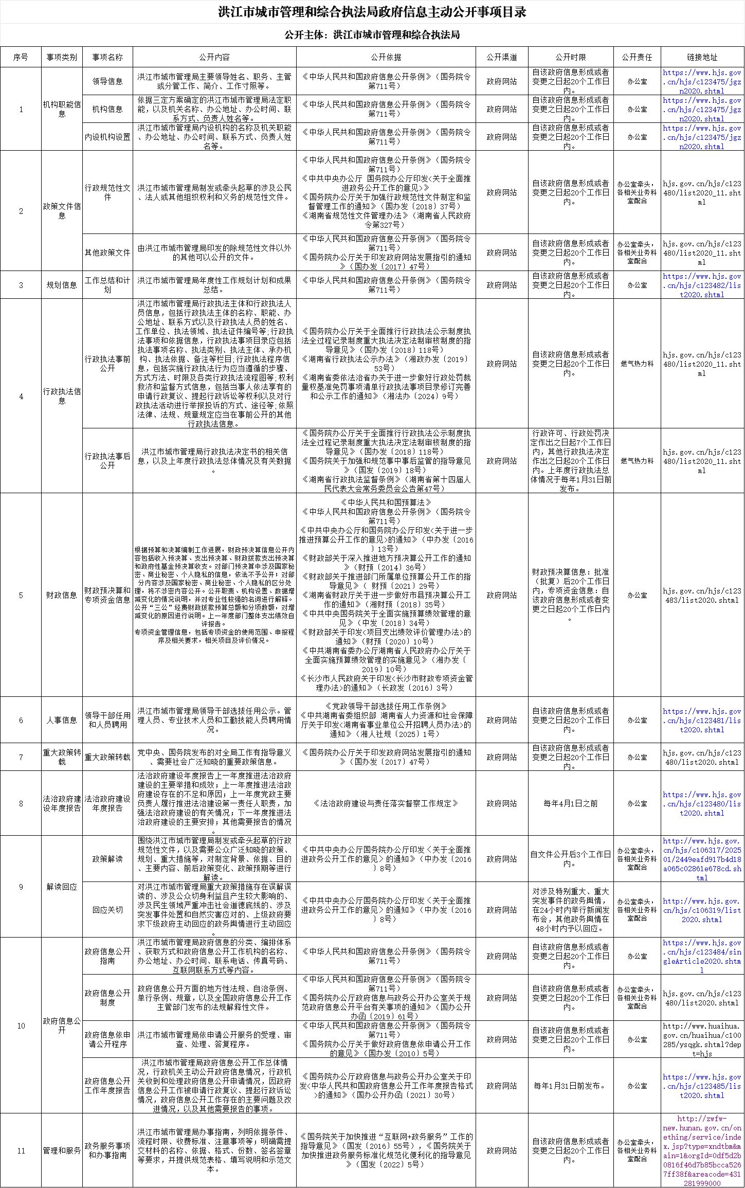 洪江市城市管理和综合执法局政府信息主动公开事项目录
