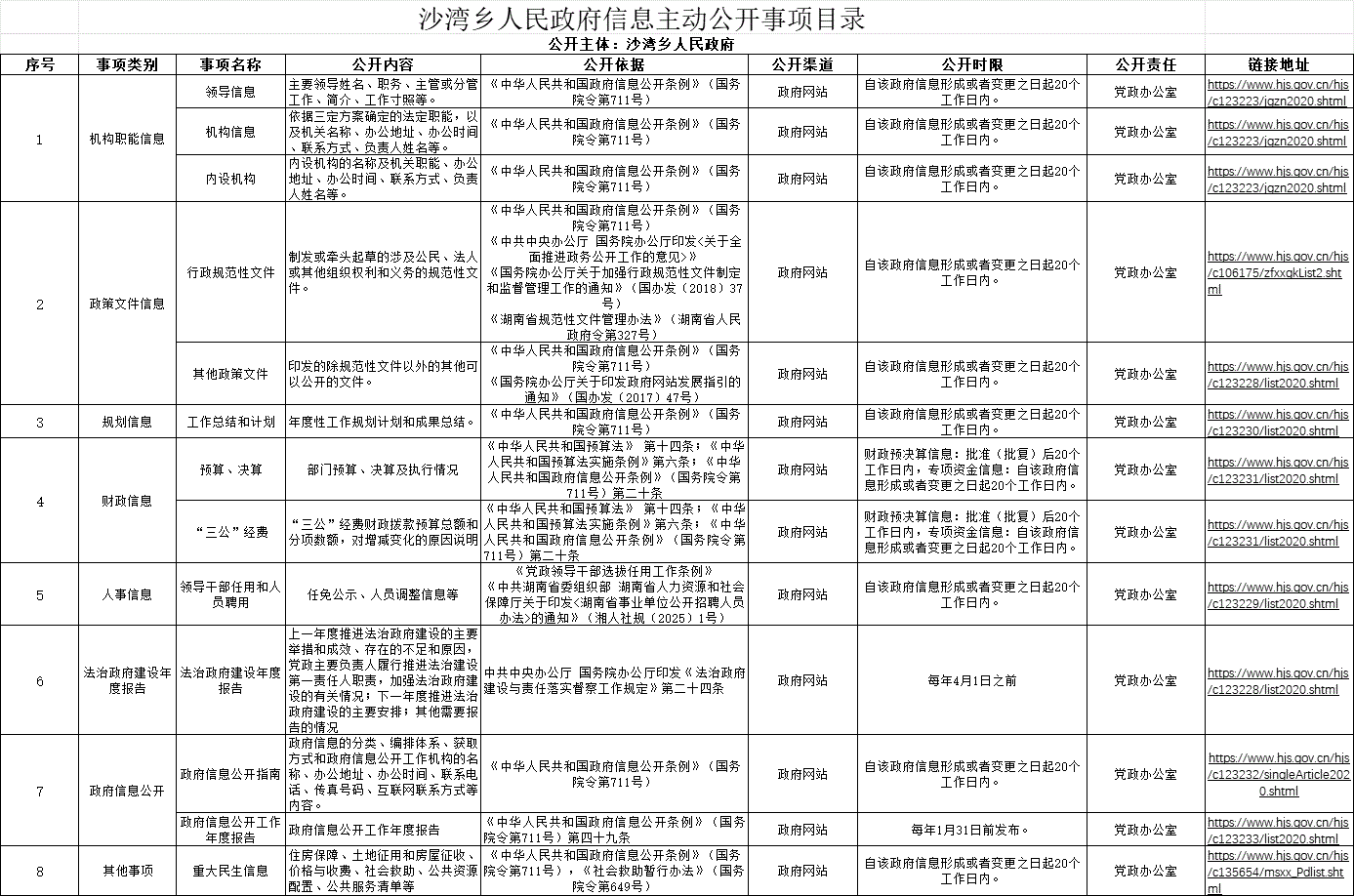 沙湾乡人民政府信息主动公开事项目录.xlsx