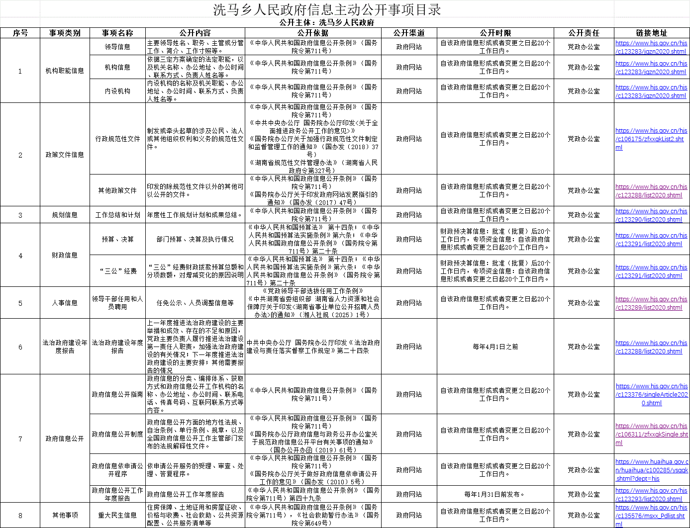洗马乡人民政府信息主动公开事项目录