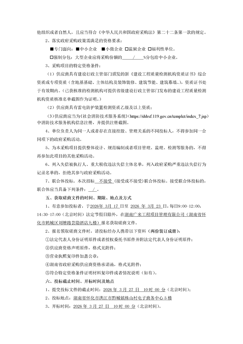 洪江市黔城农产品冷链物流项目第三方检测服务竞争性磋商邀请公告
