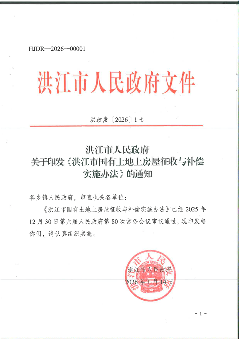 洪江市人民政府关于印发《洪江市国有土地上房屋征收与补偿实施办法》的通知