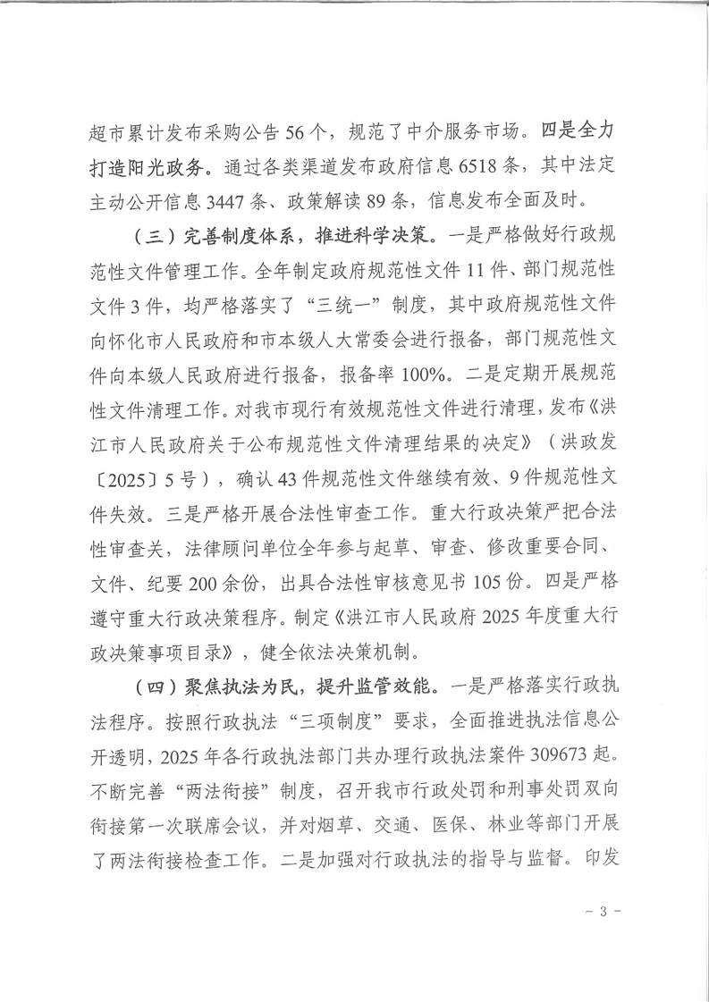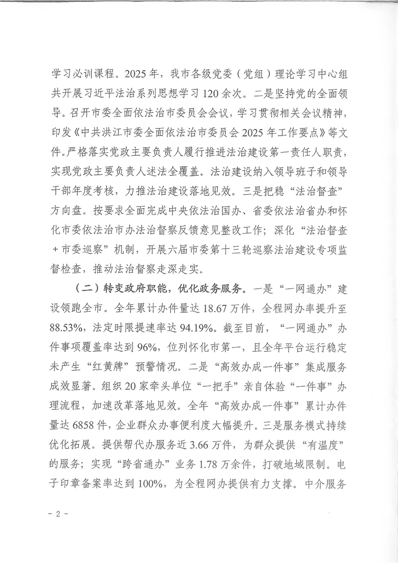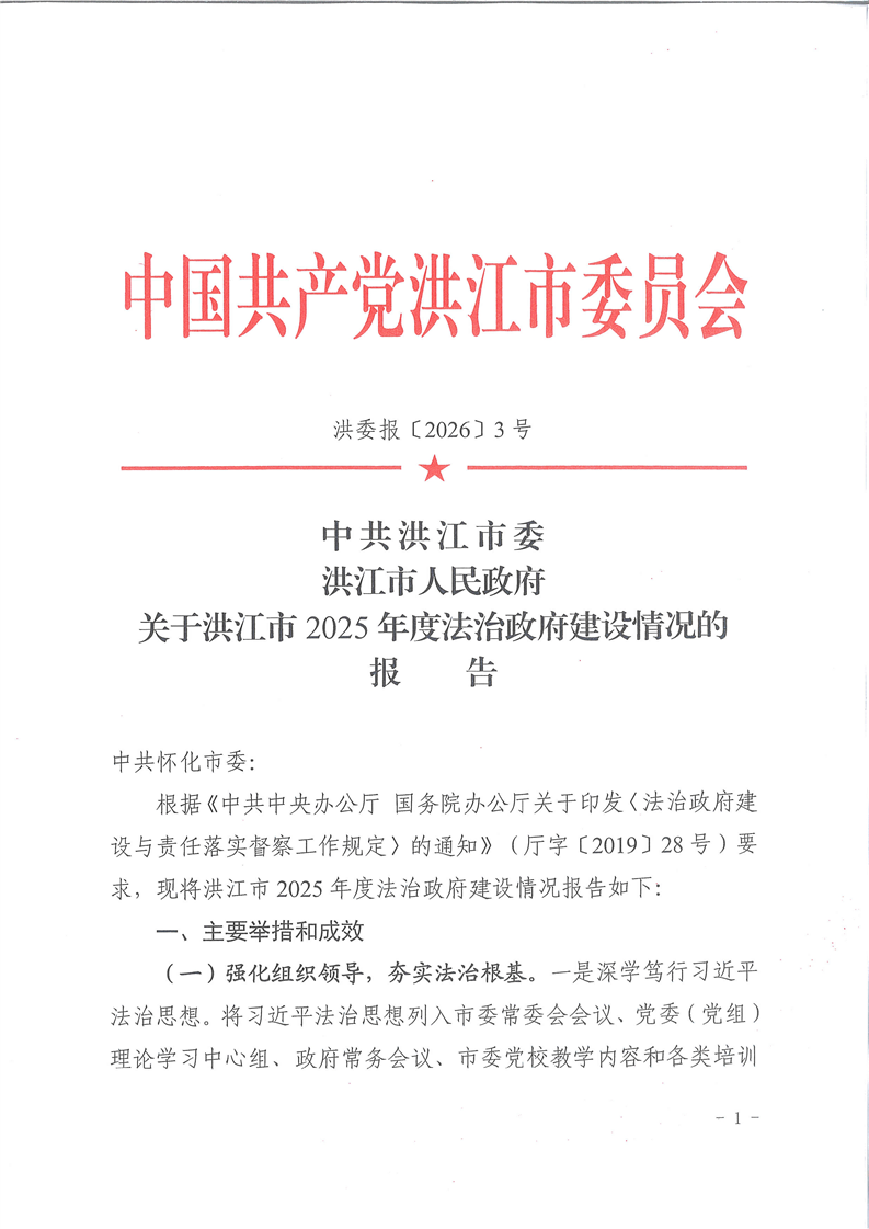 中共洪江市委洪江市人民政府关于洪江市2025年度法治政府建设情况的报告