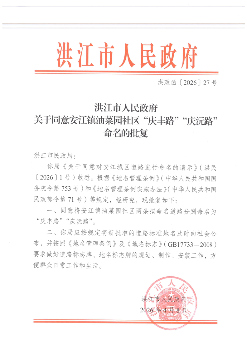 关于洪江市安江镇油菜园社区道路命名的批复解读