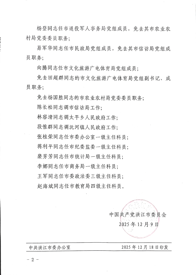 中共洪江市委关于王芬颖等同志职务任免的通知