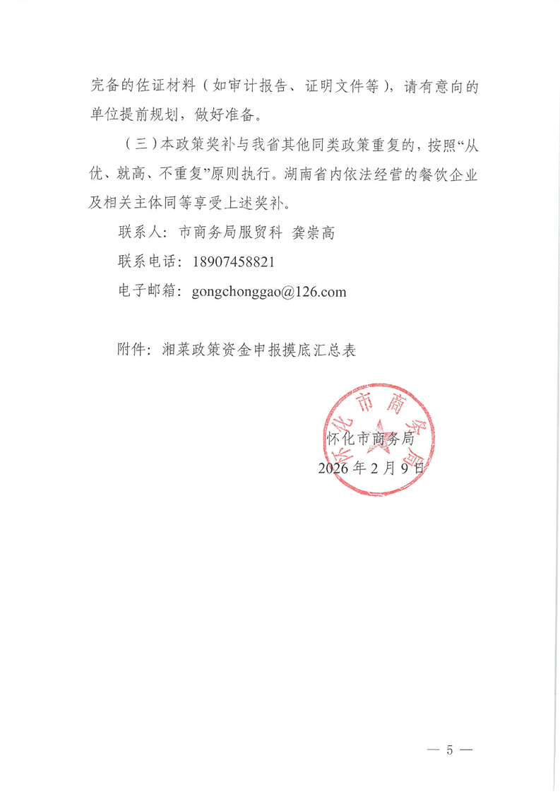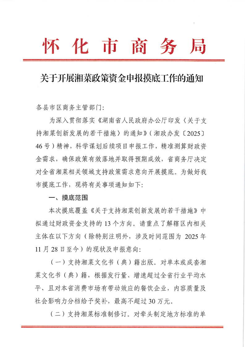关于转发怀化市商务局《关于开展湘菜政策资金申报摸底工作的通知》的通知