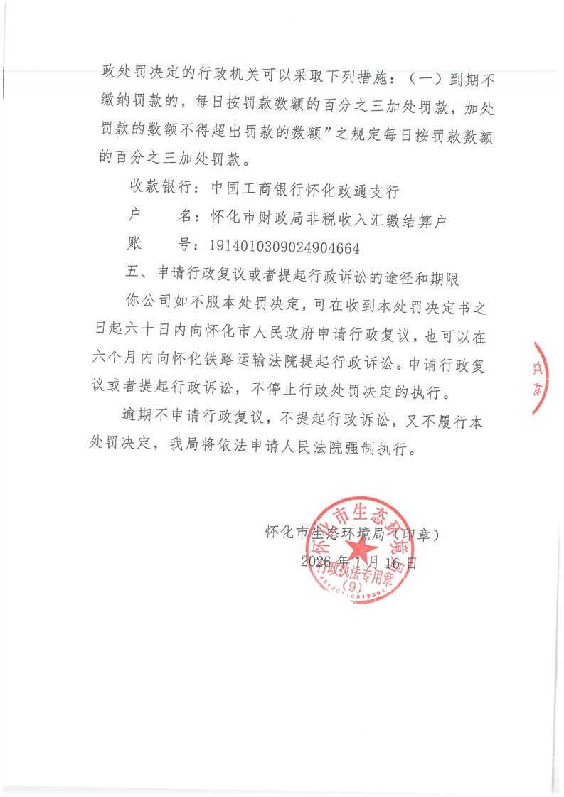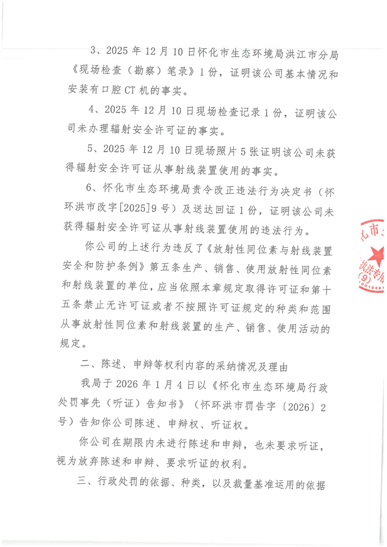 关于对洪江张波口腔医院有限公司行政处罚决定书的公示(怀环洪市罚字〔2026〕2号)